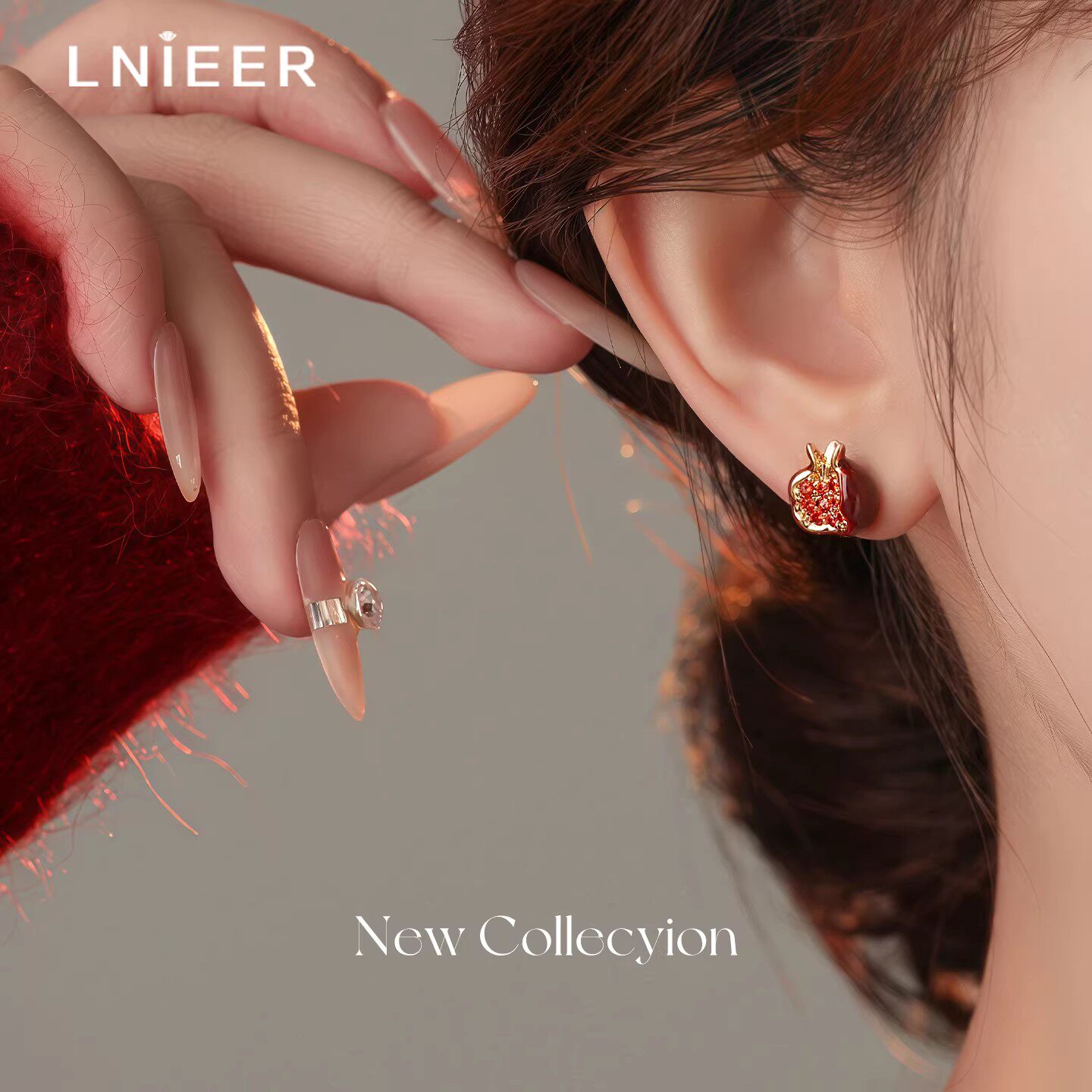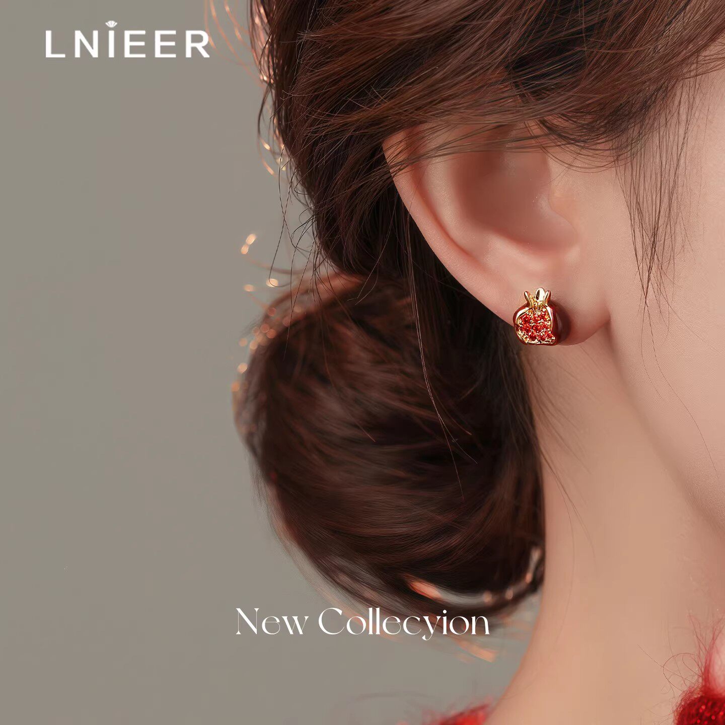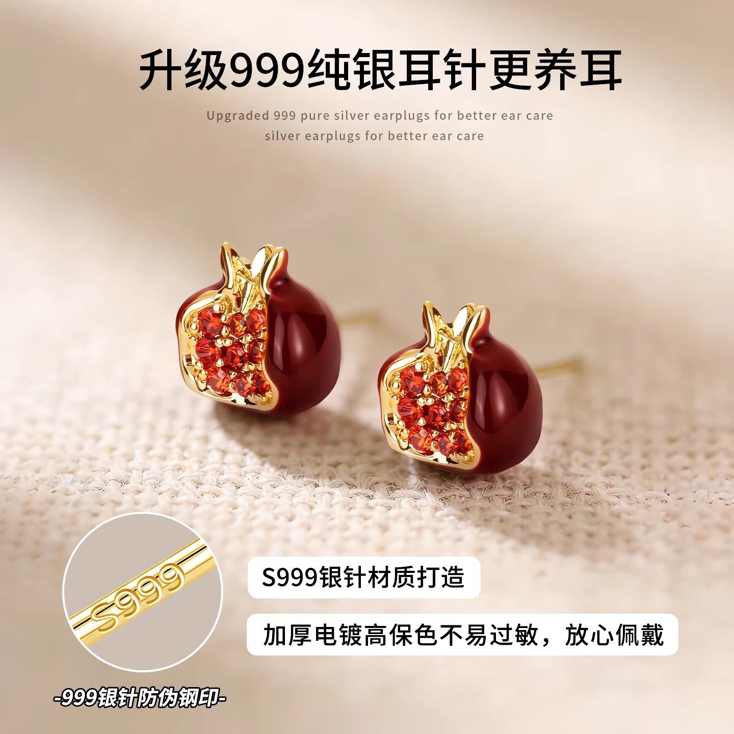 S999纯银针红石榴耳钉女轻奢高级感耳环2026新款爆款新年红色耳饰