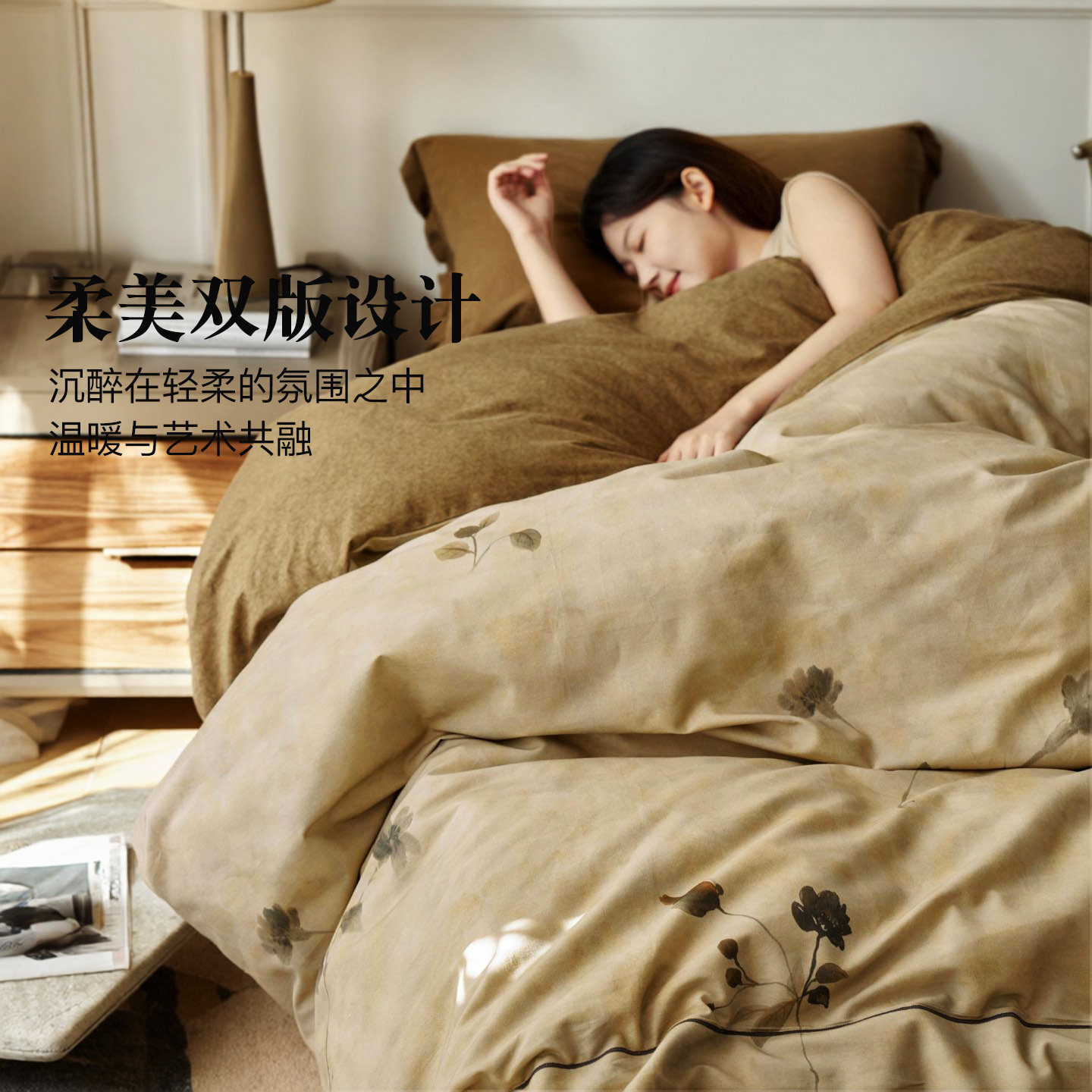如奕宋氏美学全棉磨毛床上四件套秋冬加厚被套轻奢高级感主卧床品