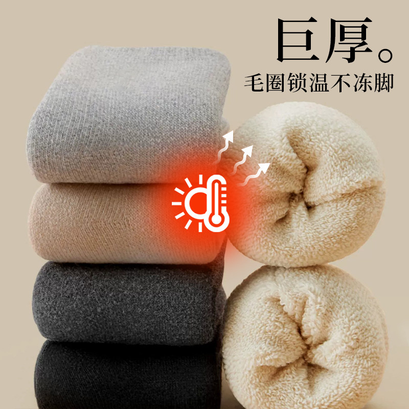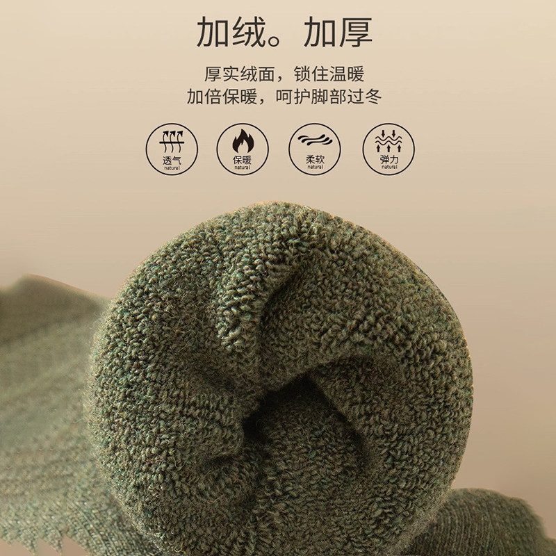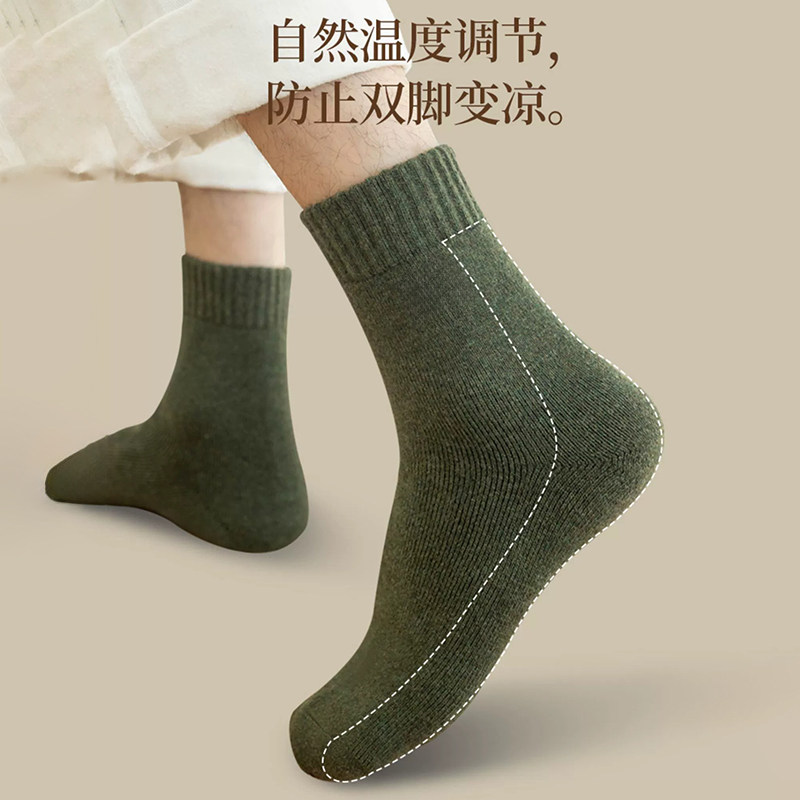 加厚袜子男士秋冬季中筒袜保暖棉袜毛圈袜地板袜加绒全棉长袜羊绒