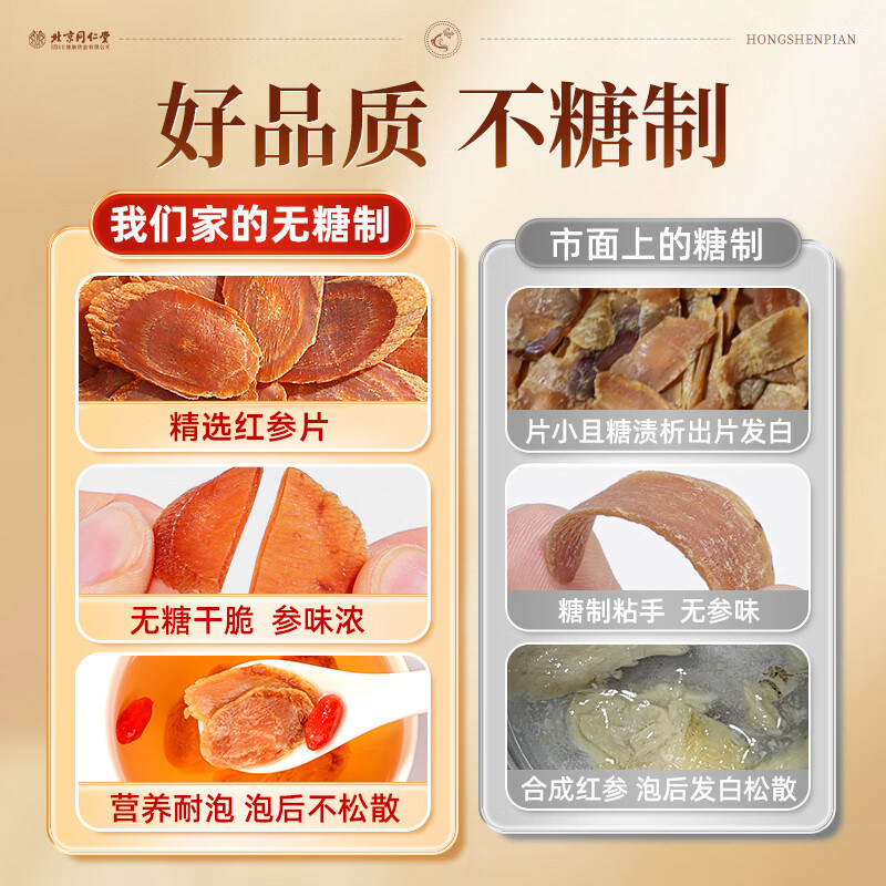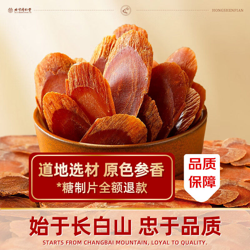 北京同仁堂足龄红参片官方旗舰店正品送礼品500g中药材高丽参人参