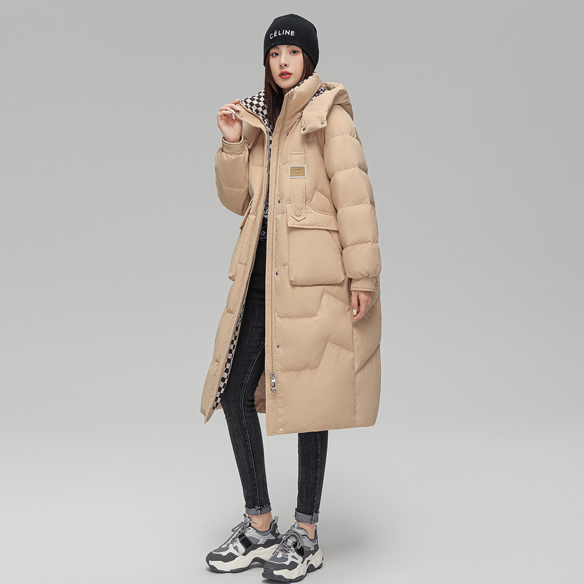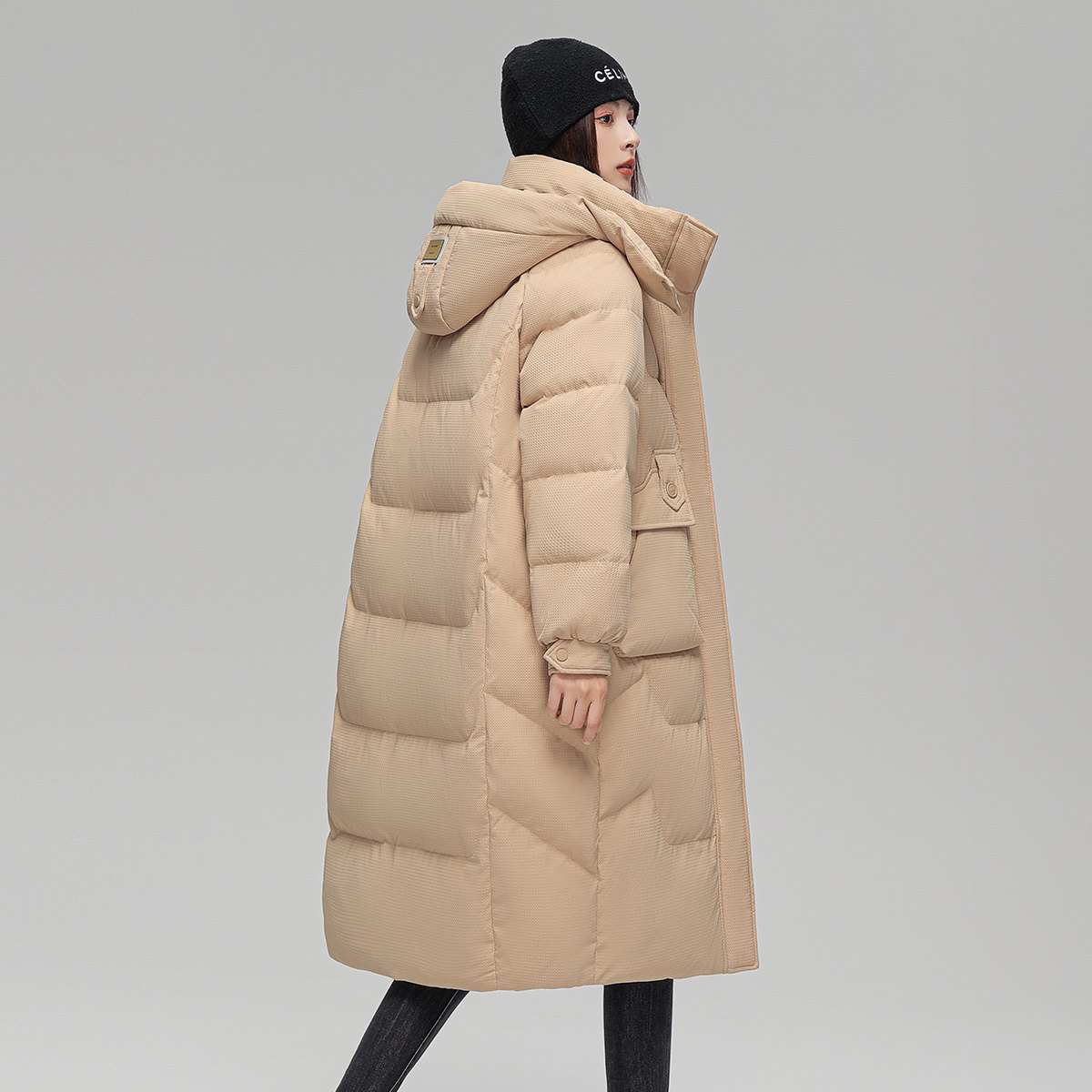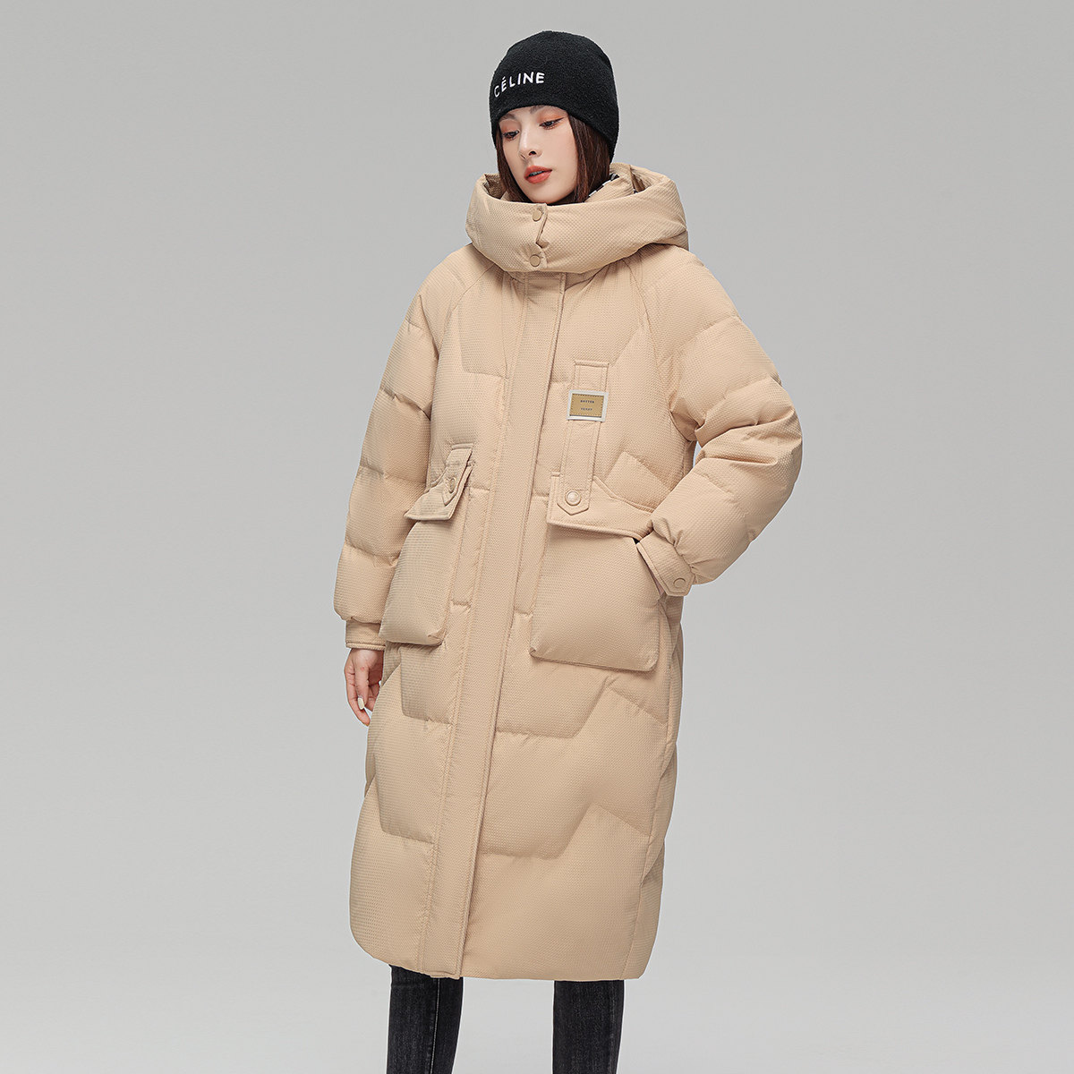 雪中飞冬新款时尚休闲小众宽松廓形中长款肌理感羽绒服