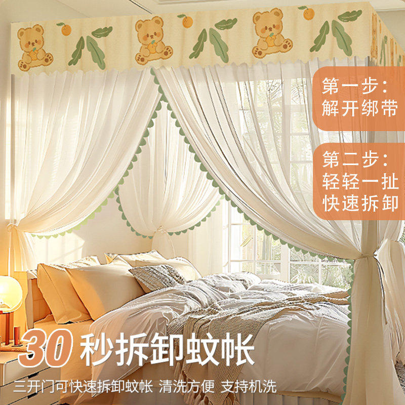 蚊帐卧室家用三开门落地宿舍单人床支架加粗免拼宫廷防蚊纱帐2026