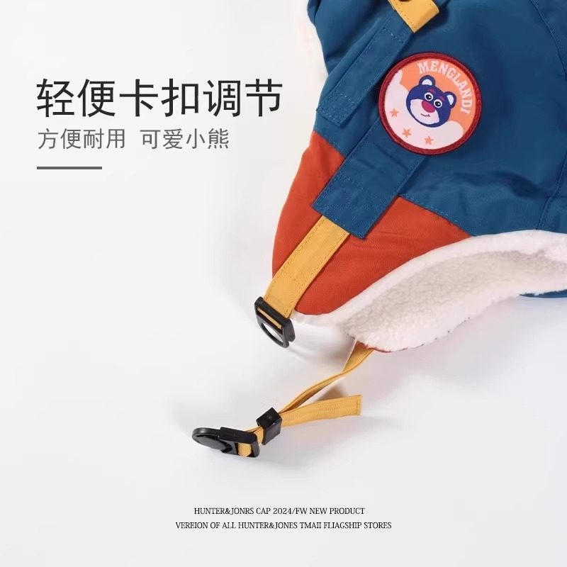 hugz儿童帽子男孩女孩保暖针织毛线帽秋冬季户外护耳防风熊仔帽子