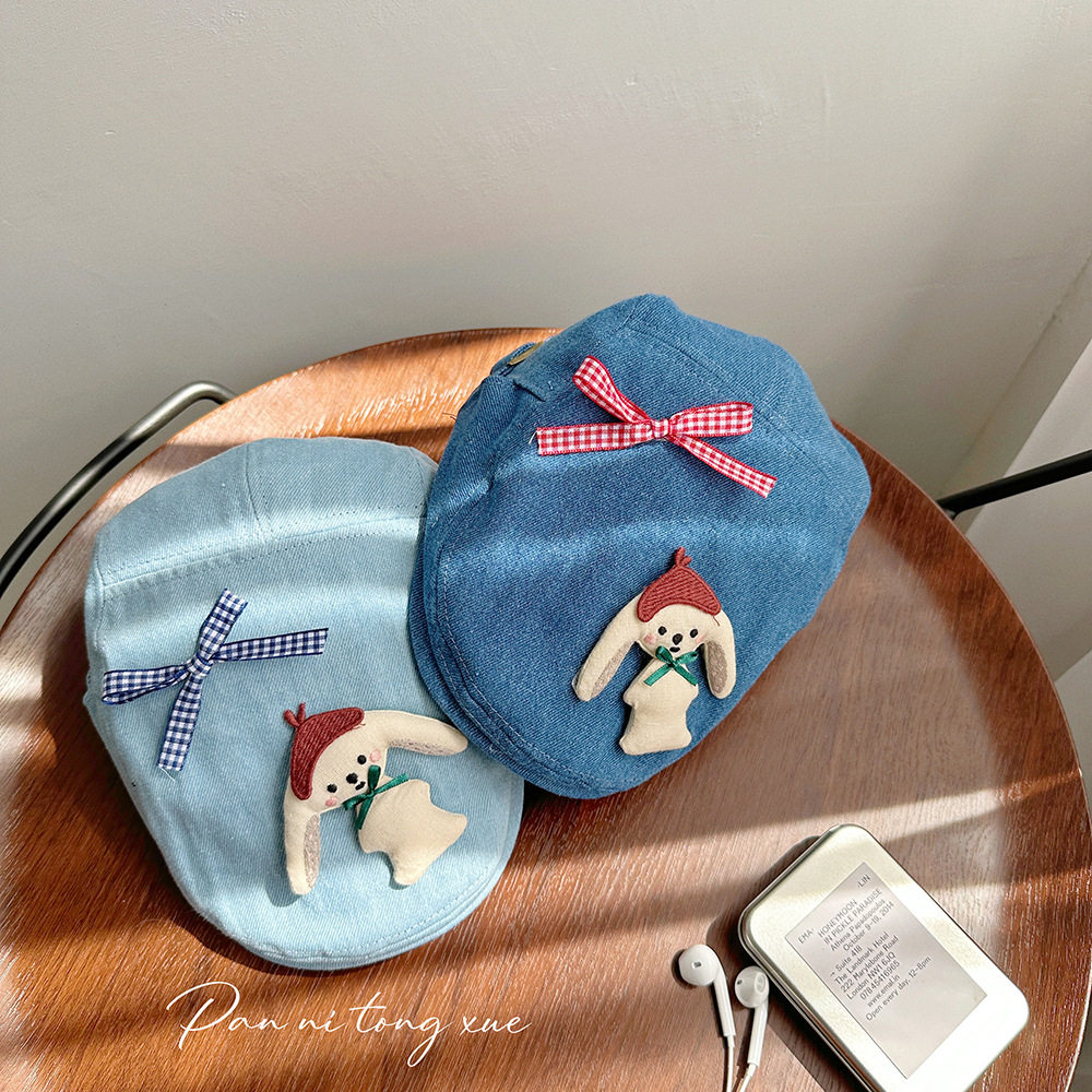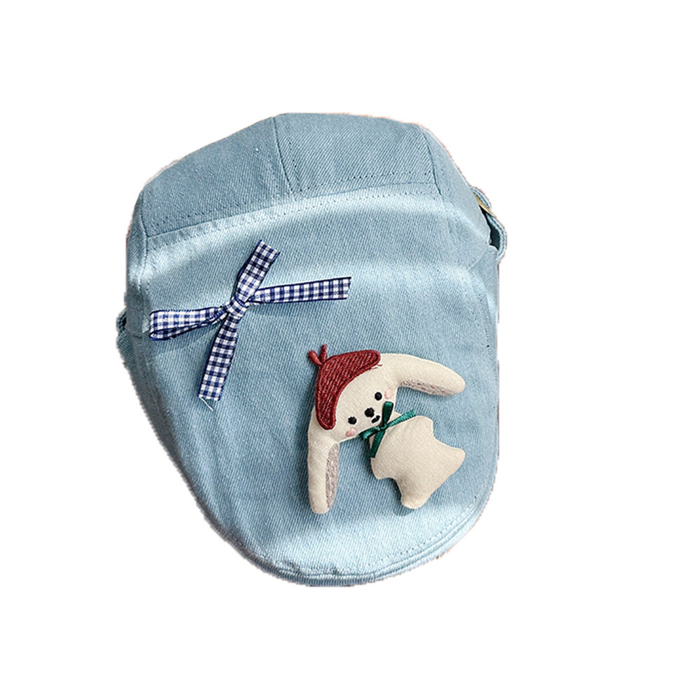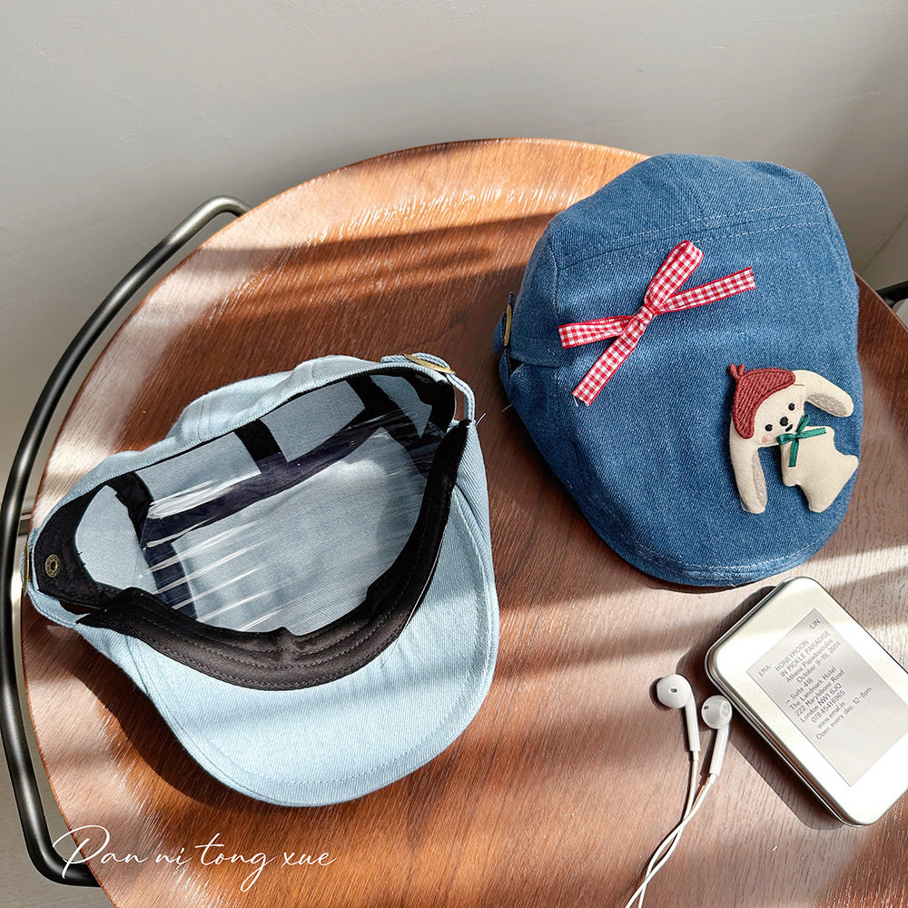 【LH】小狗蝴蝶结图案牛仔前进帽自制甜美画家帽气质儿童文艺春夏