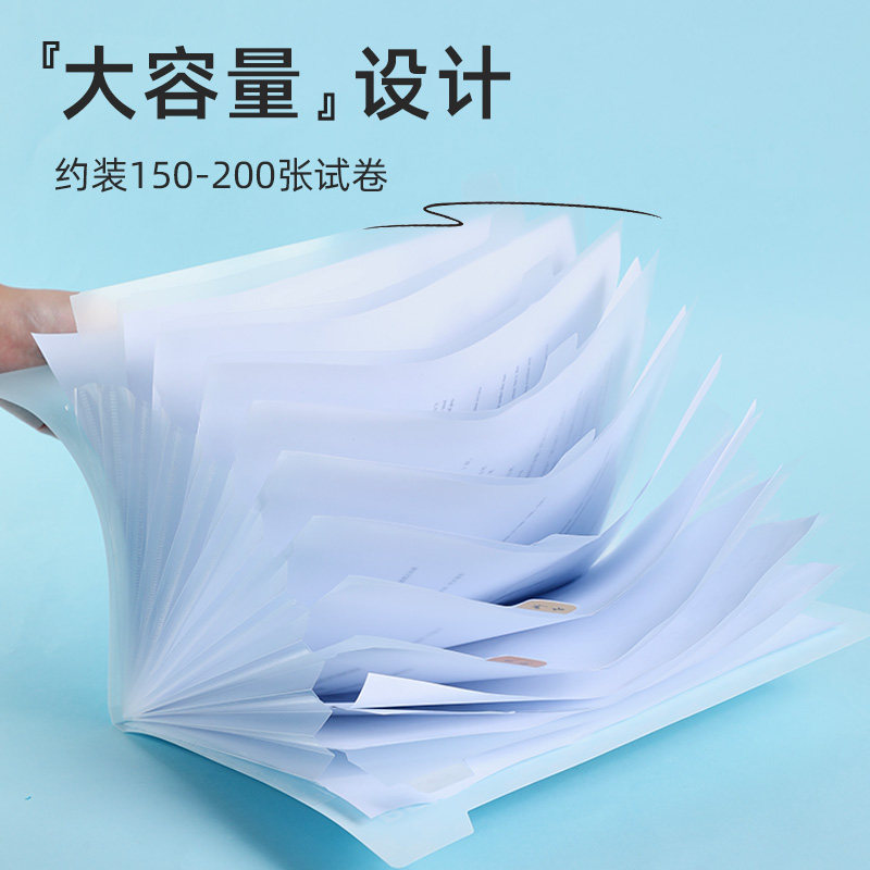 贝发小学生试卷袋加大容量A4文件夹多层风琴包试卷整理神器初中生资料册收纳袋12格加厚