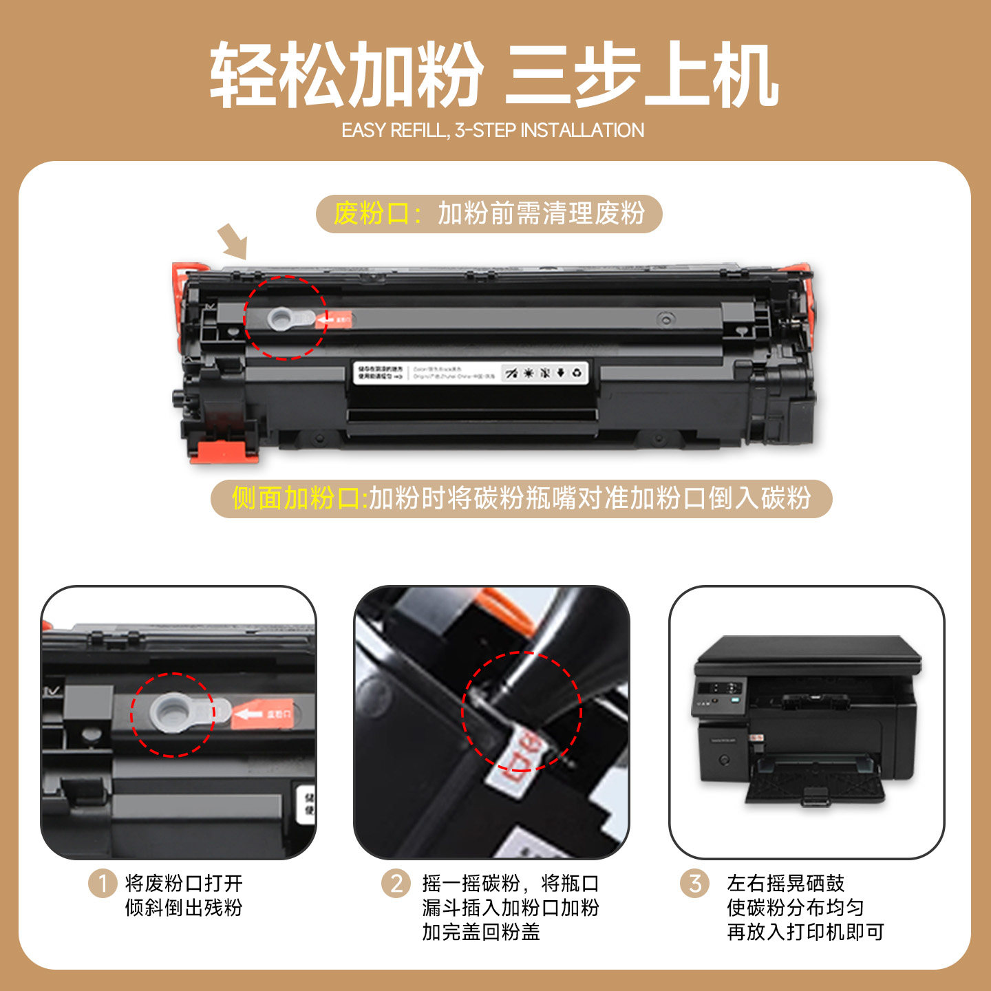 适用惠普M1136硒鼓CC388A/88A墨盒HP LaserJet Pro M1136 MFP激光打印机粉盒P1108 M126 M128碳粉墨粉易加粉