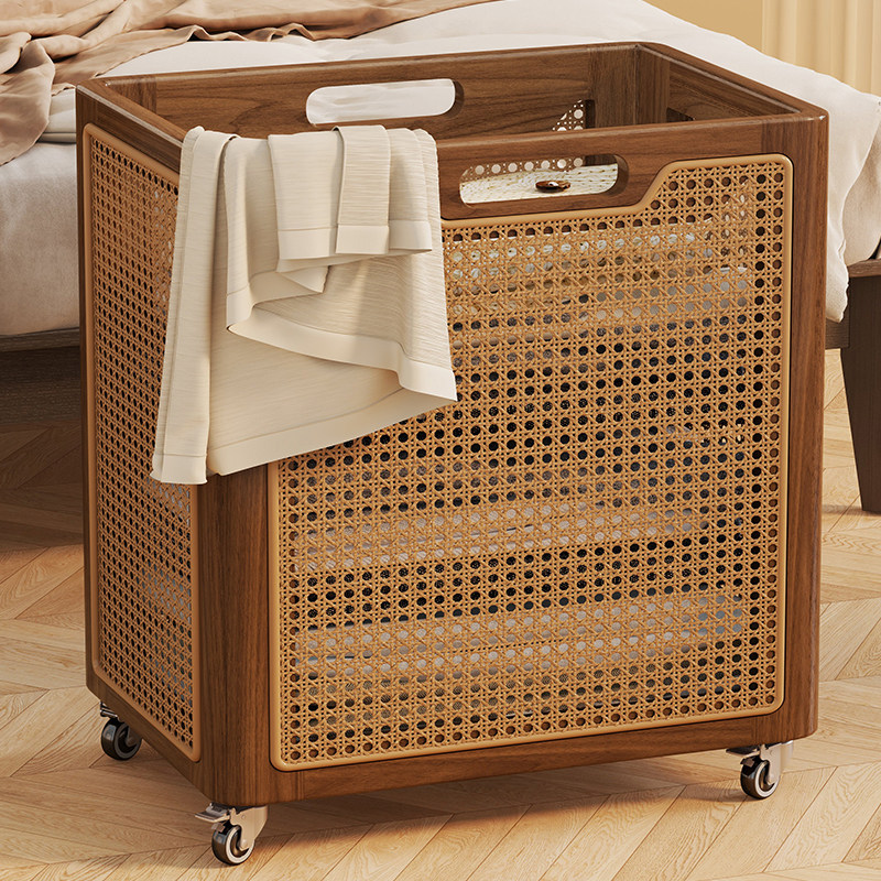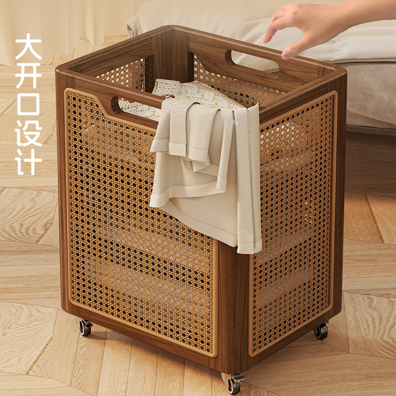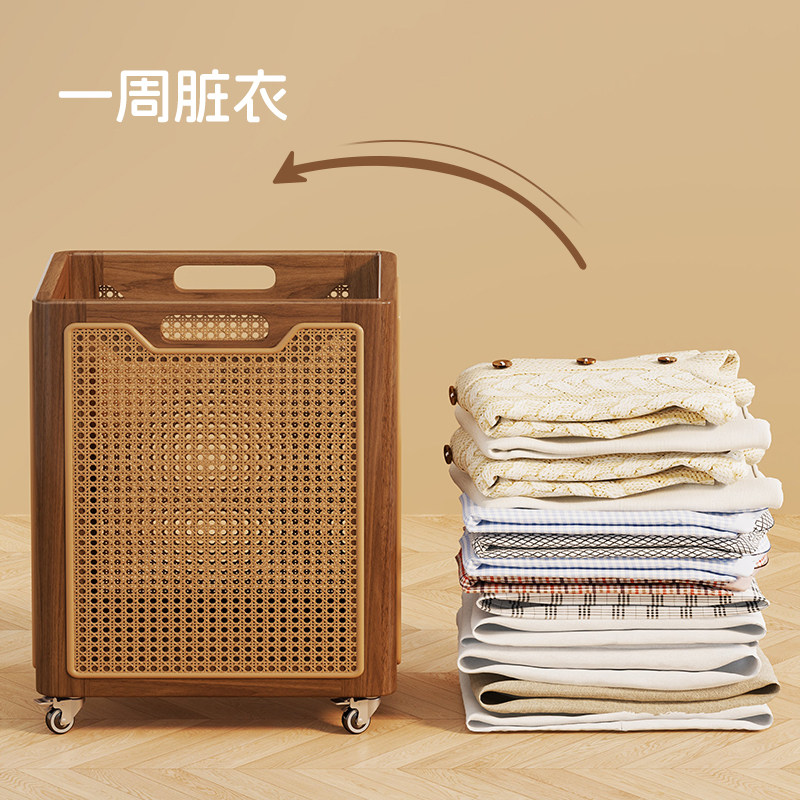 实木脏衣篓家用收纳筐藤编置物架洗衣桶浴室放脏衣服多功能脏衣篮