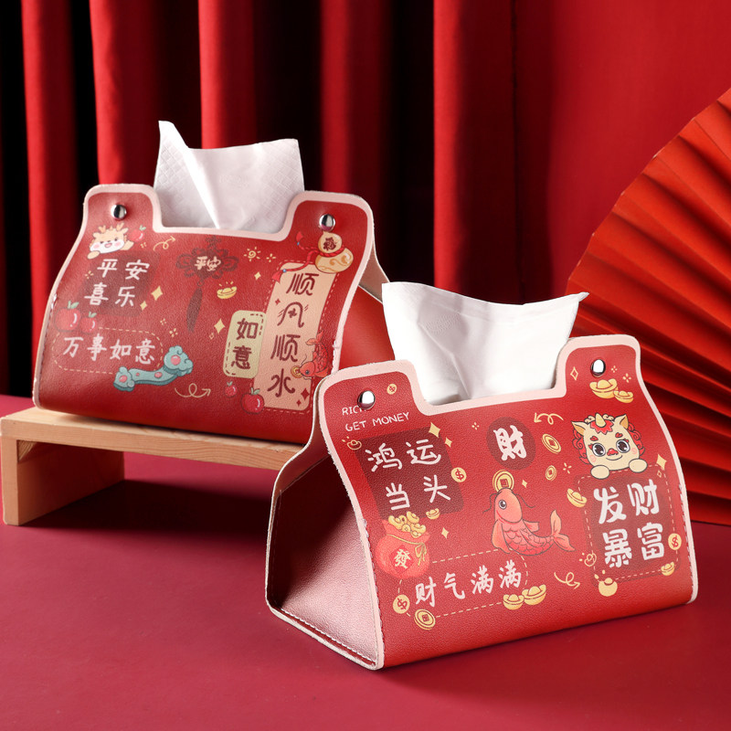喜庆高级感红色纸巾盒创意家用茶几弹簧纸抽盒卧室床头桌面收纳盒
