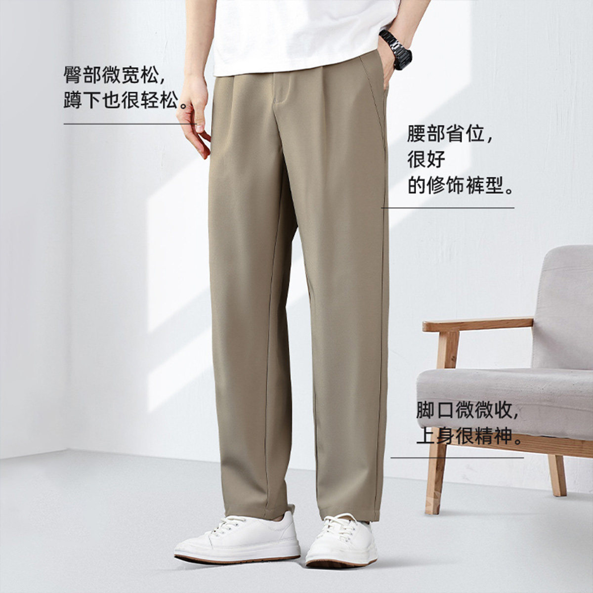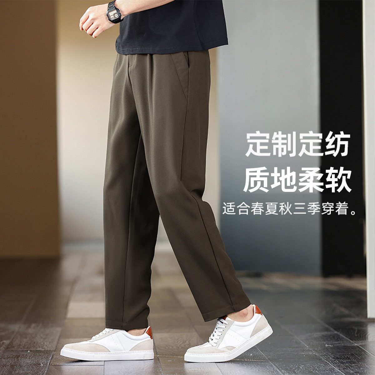 Artsdon/阿仕顿2025春秋高端男士轻商务舒适品质高腰直筒休闲裤潮