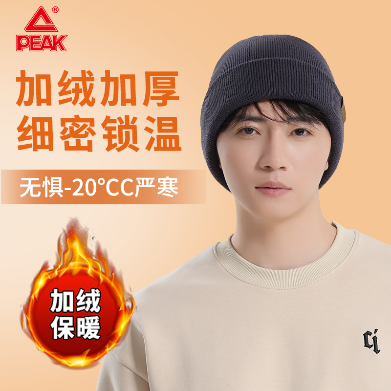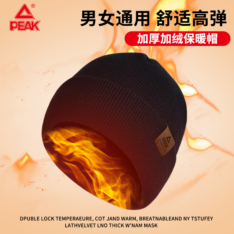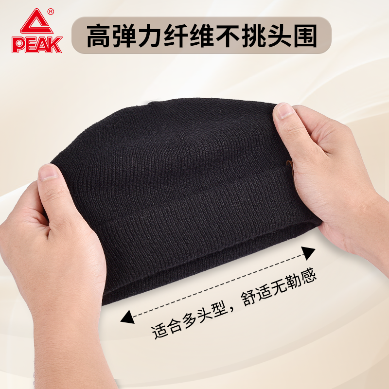 匹克帽子秋冬季针织帽保暖加厚男女新款防寒护耳运动冷帽加绒黑色