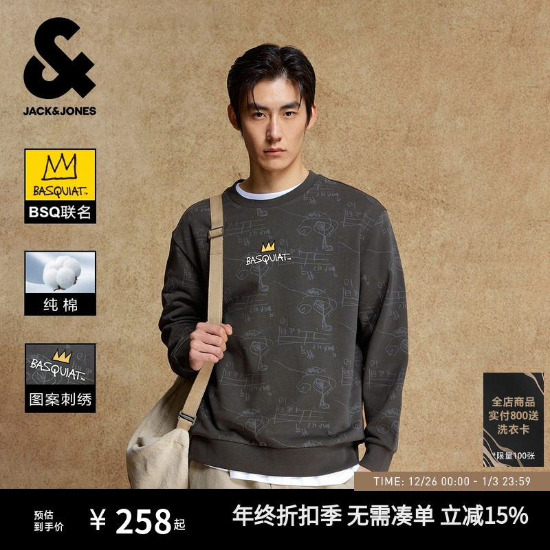 【BSQ联名】杰克琼斯25秋季新款男装宽松卫衣外套满印刺绣情侣风