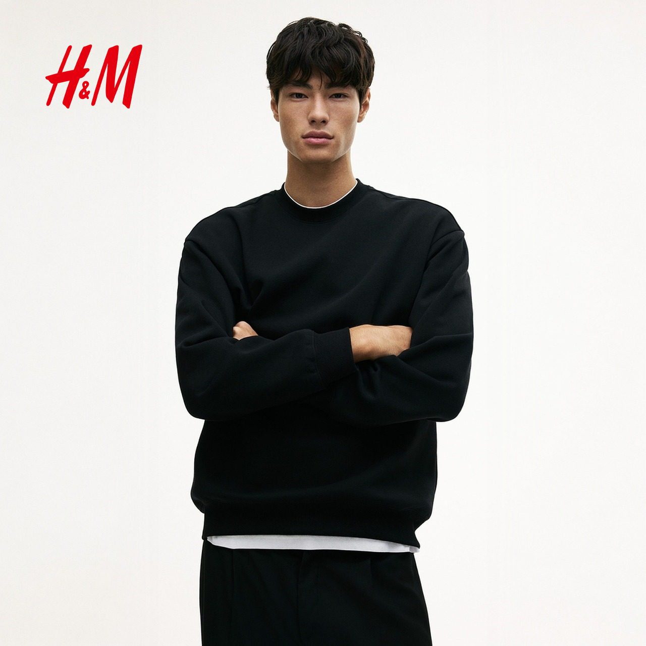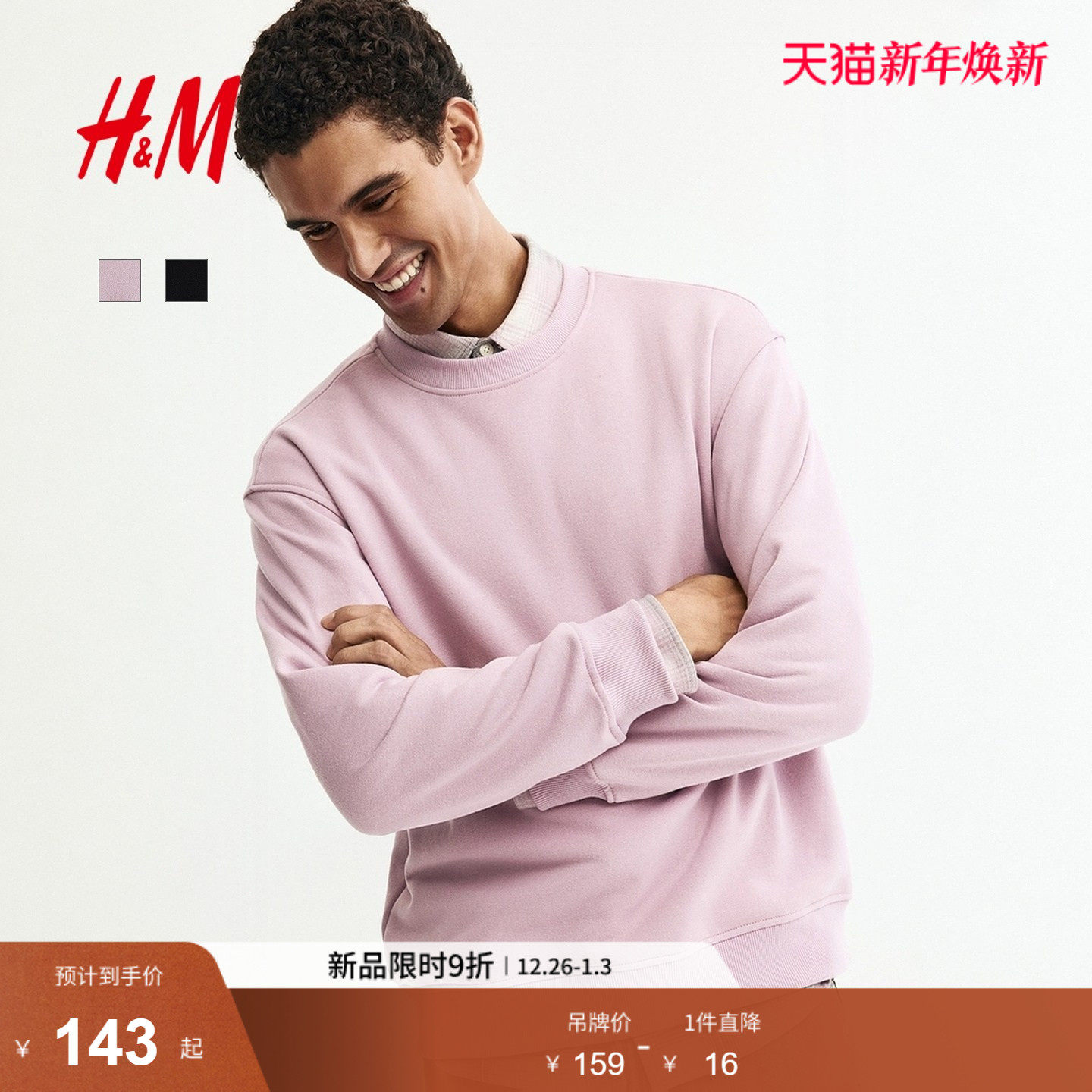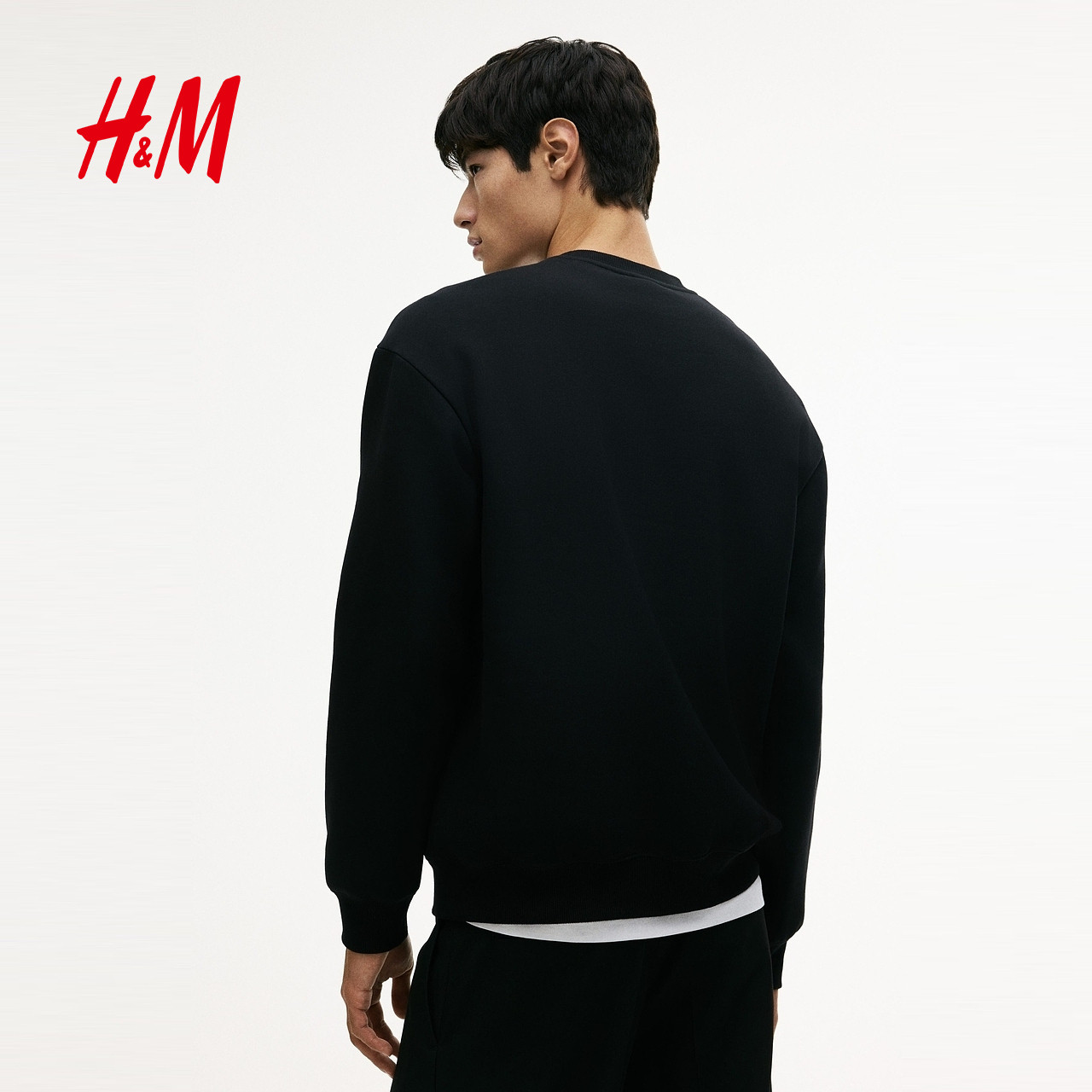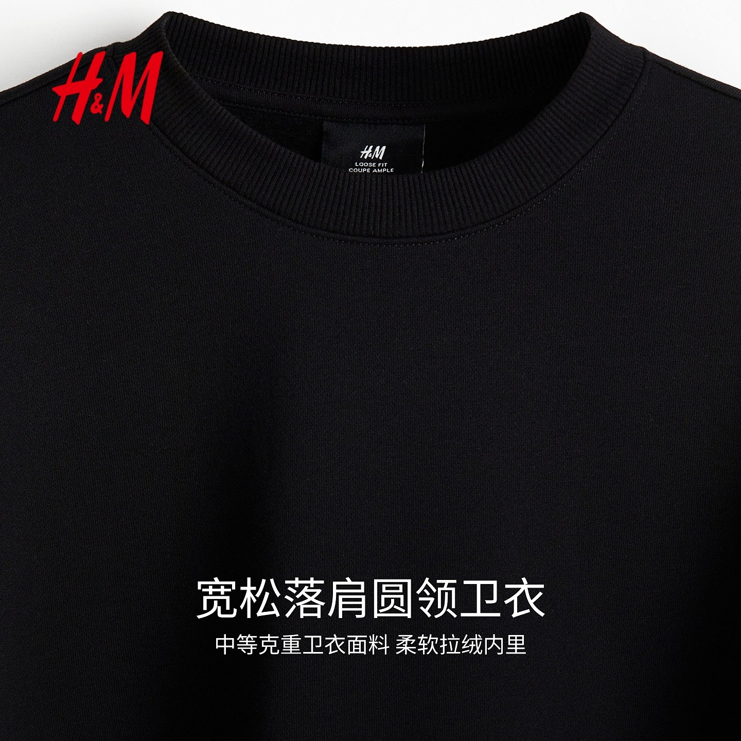 HM男装女装卫衣2025冬季新款加绒落肩宽松圆领情侣装套衫1308076