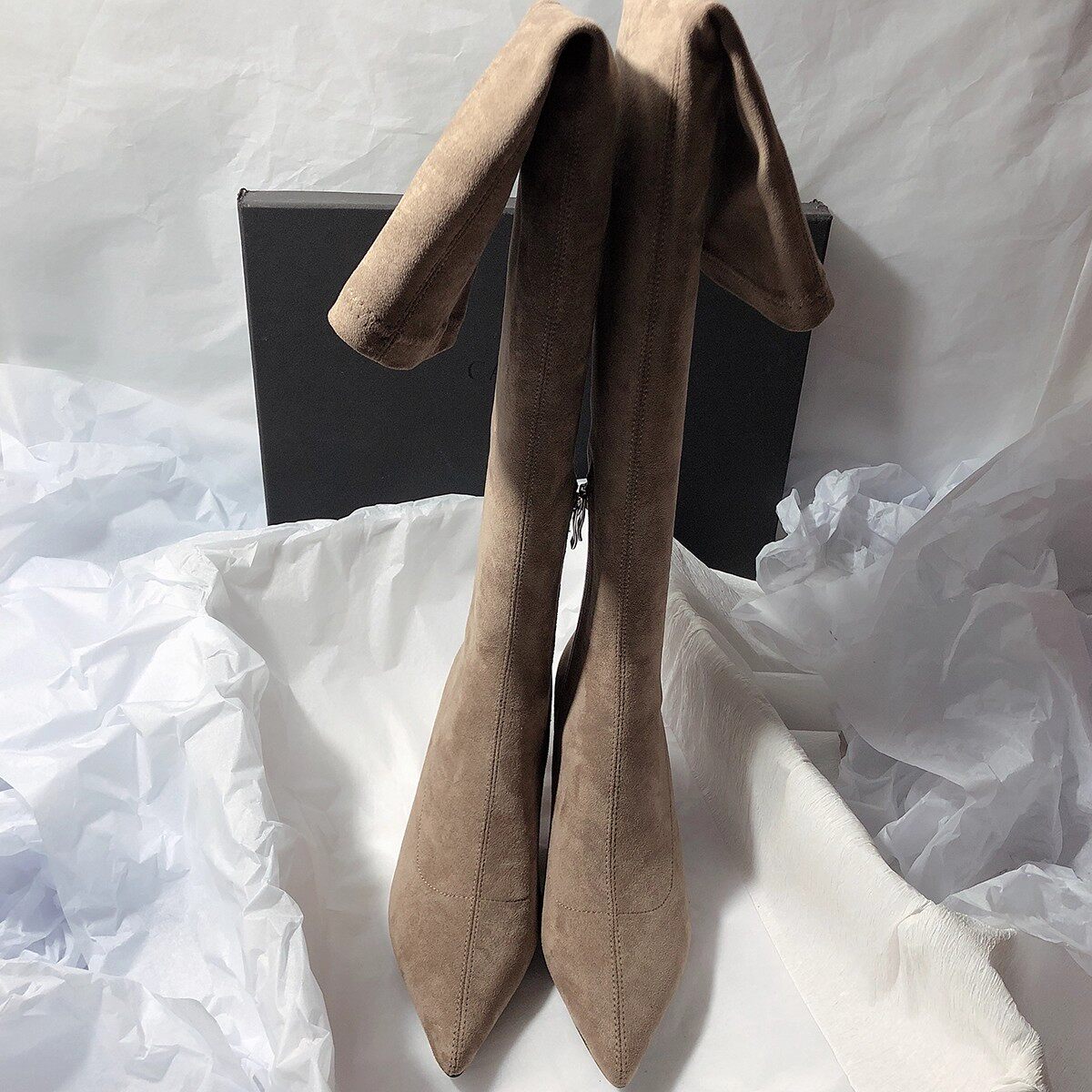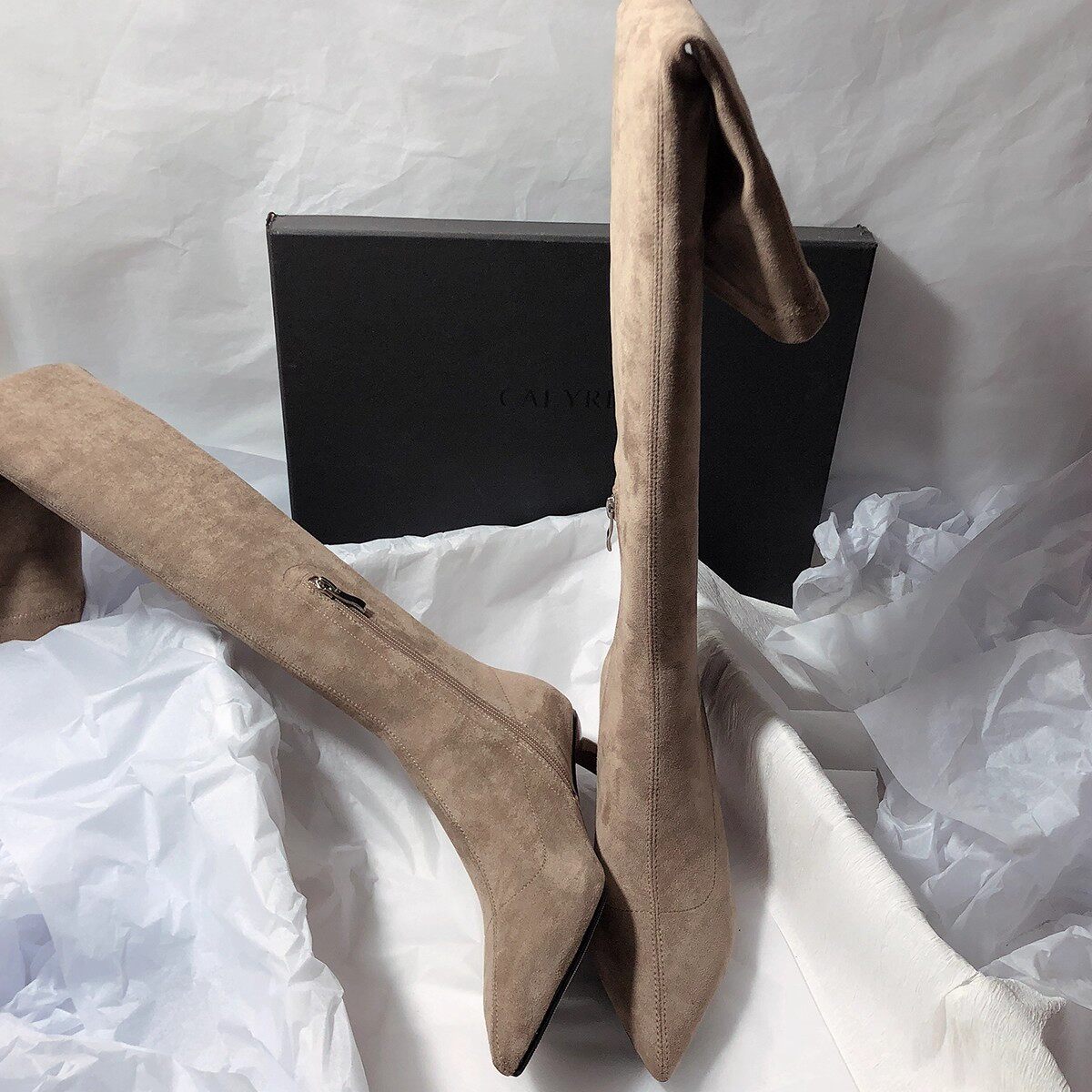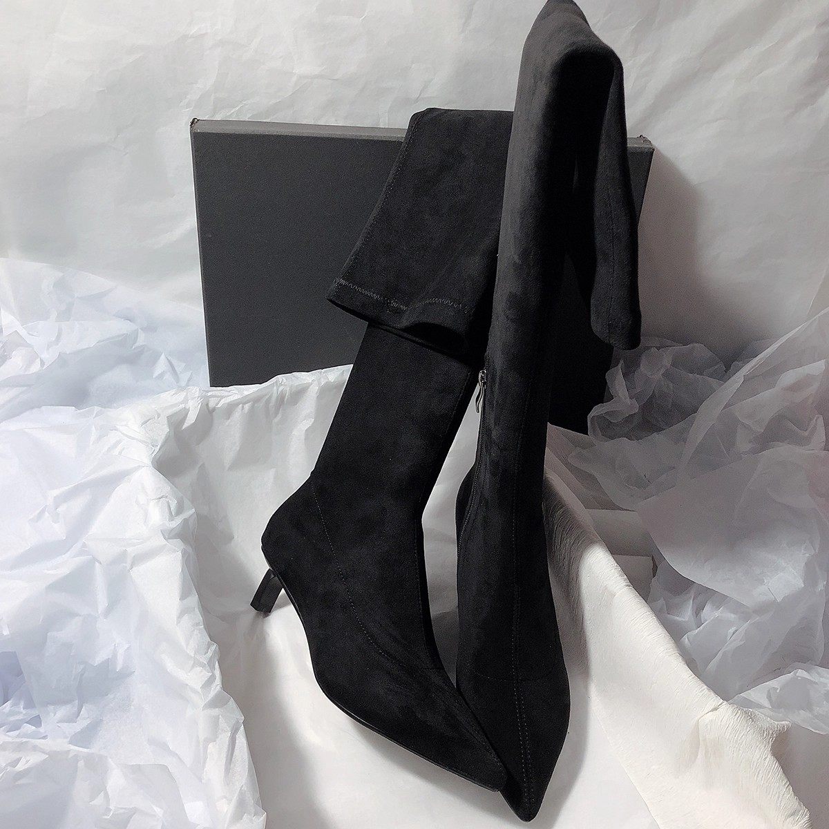 森巷侧拉链瘦瘦靴猫跟大码长靴尖头细跟过膝靴高筒中跟洋气磨砂