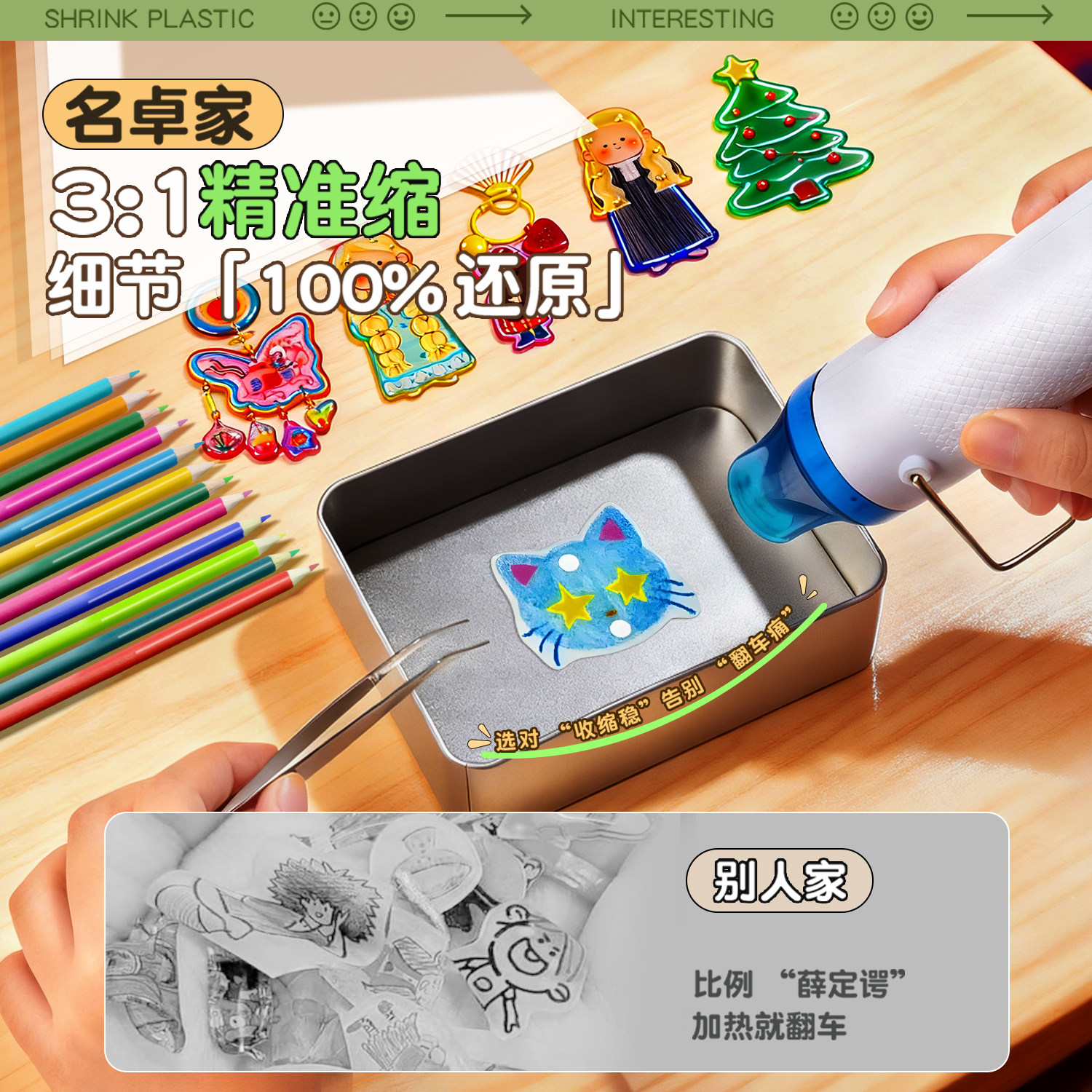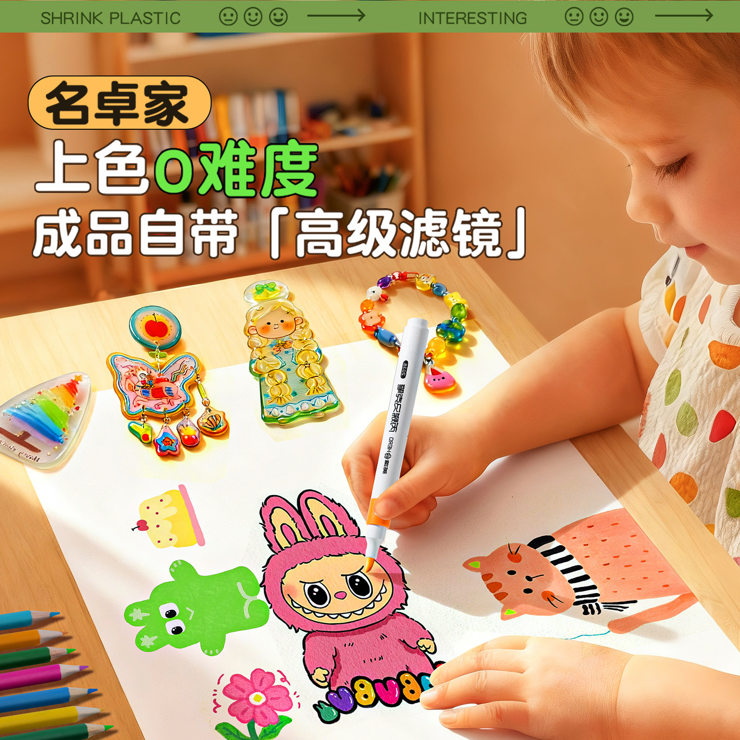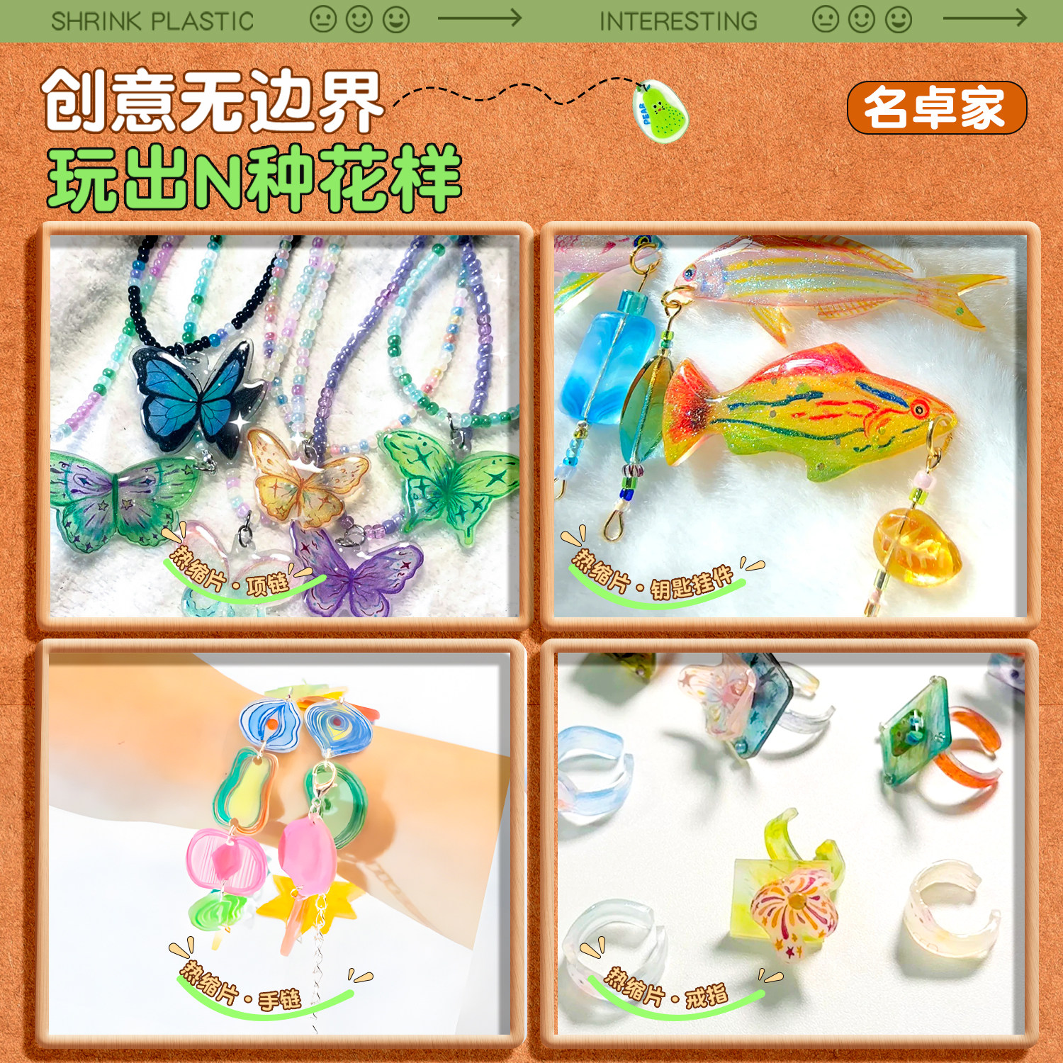 热缩片diy套装钥匙儿童创意手工挂件材料包发簪饰品礼物热缩片纸