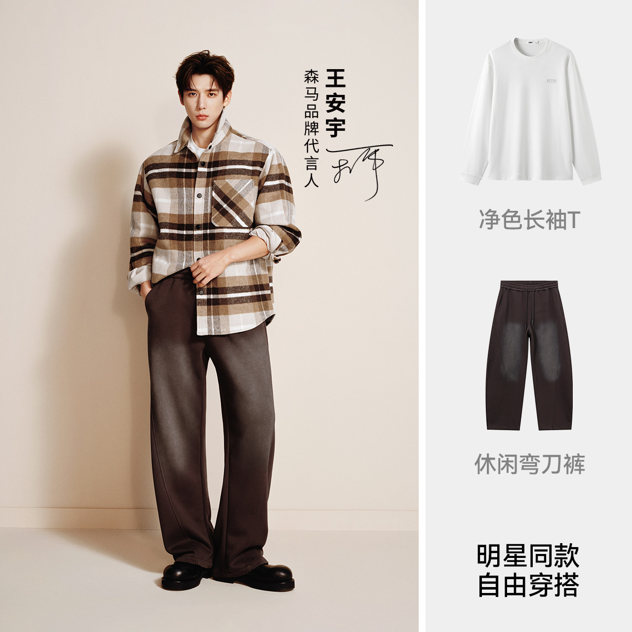 王安宇同款商场同款森马长袖T恤男冬季绒感发热弹力25新款打底衫