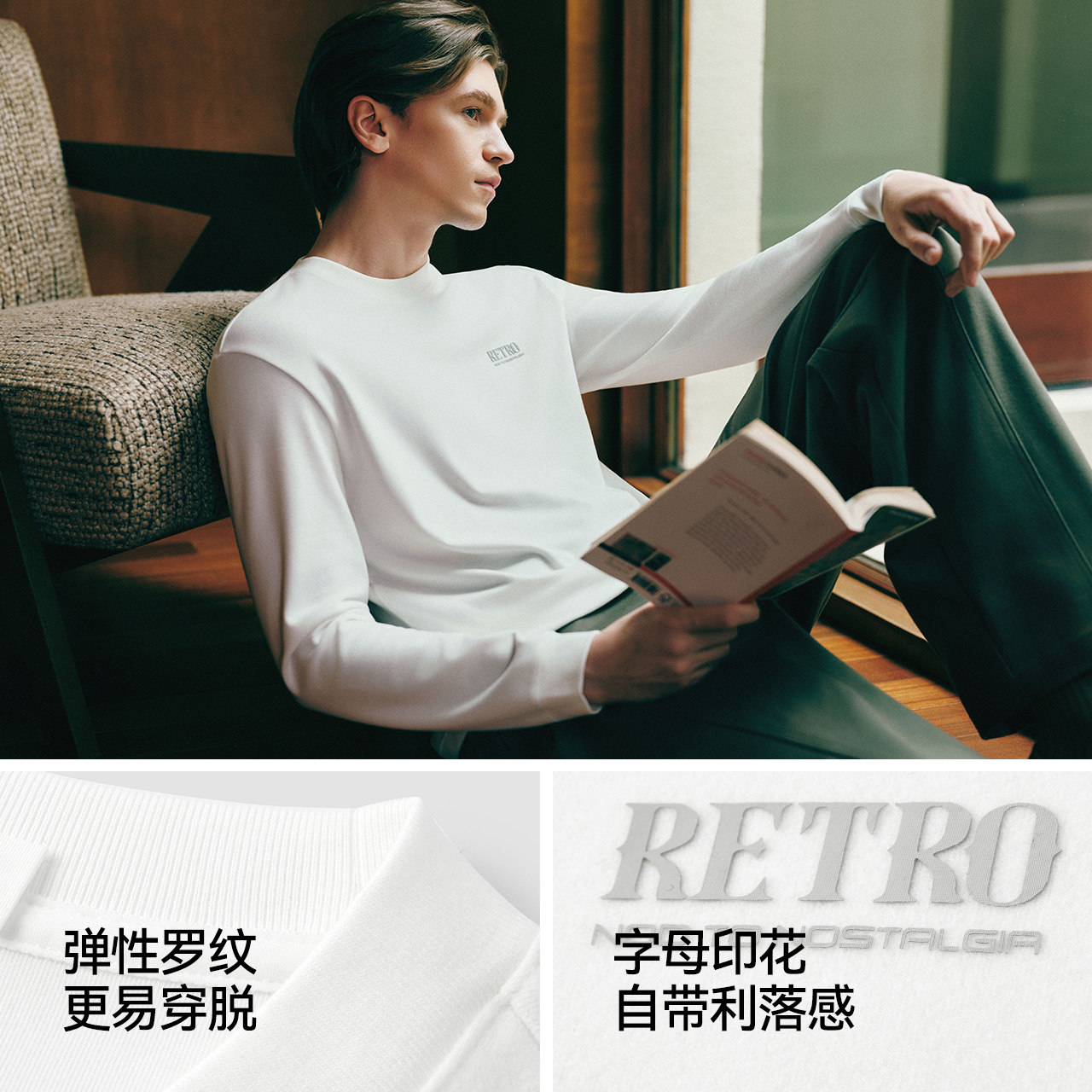 班尼路双面绒长袖t恤男2025新款秋冬季白色打底衫潮流字母上衣服A