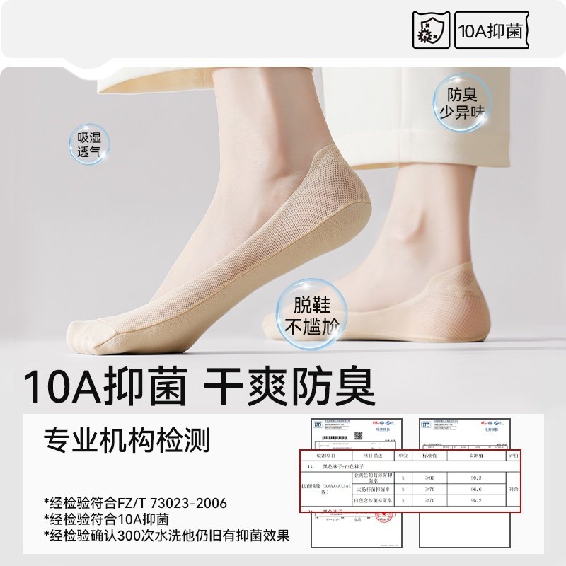 7A抗菌|蕉内银皮555Color男女情侣船袜浅口防滑棉袜隐形防臭袜子