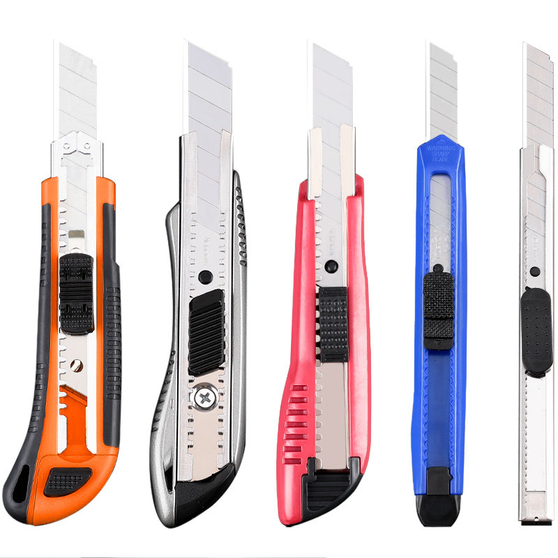 5把装美工刀大号金属壁纸刀小号快递刀裁纸刀开箱刀工具刀高碳钢锋利耐用刀片美工刀工业用安全锁设计省力