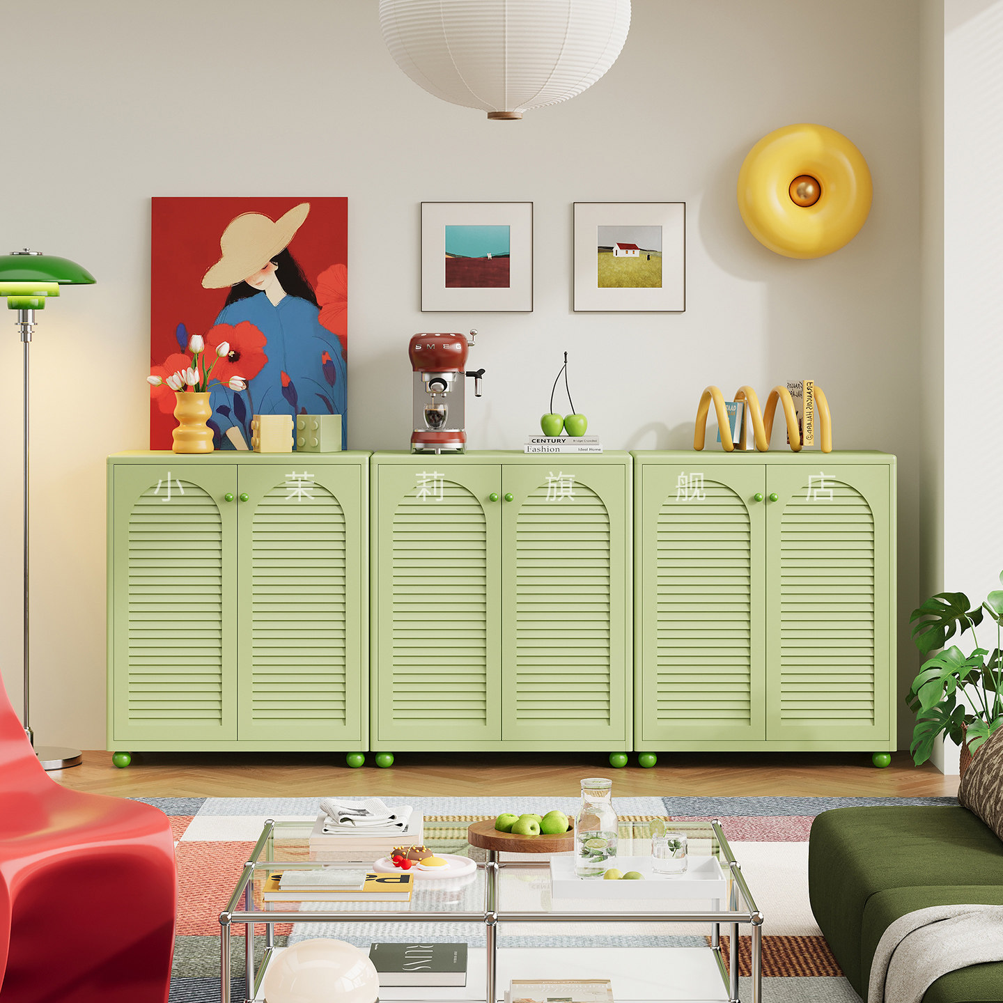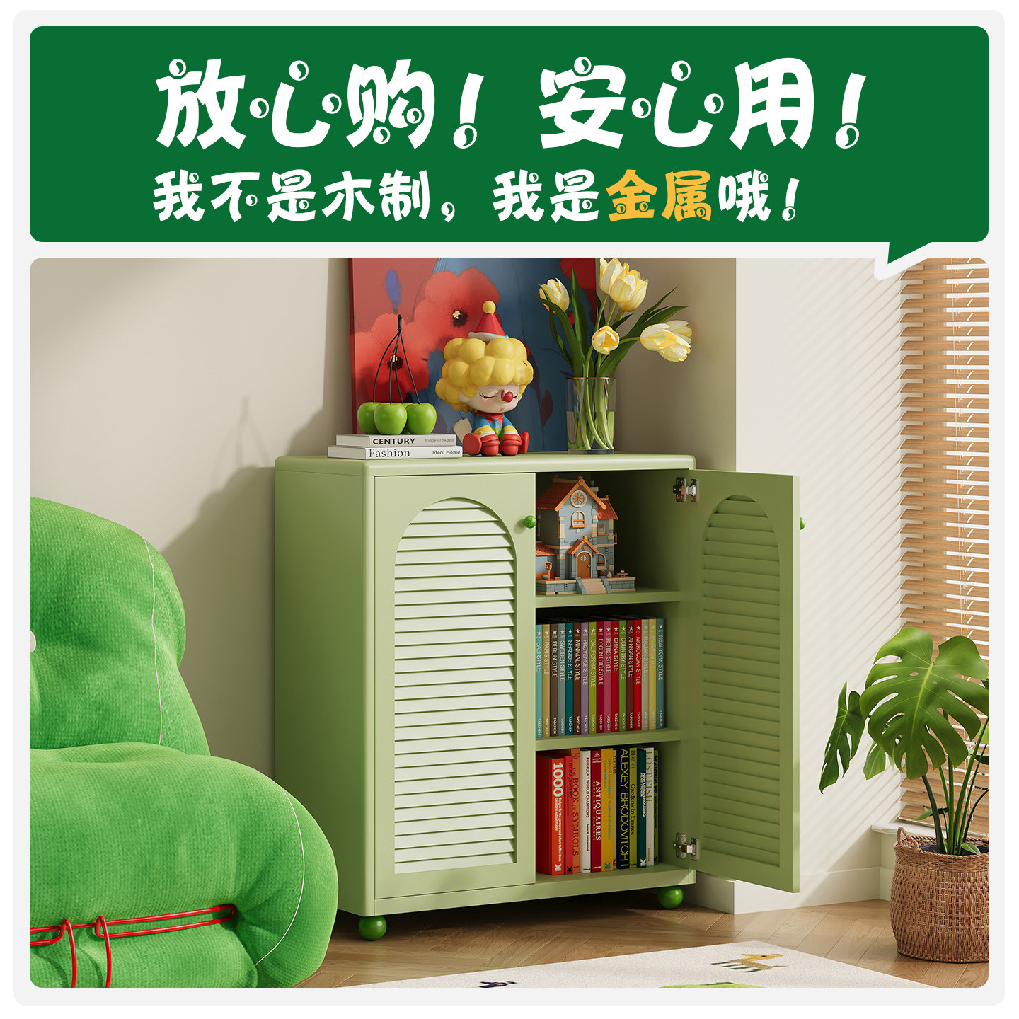 电视墙书柜中古风家用客厅多功能小型带门书架展示柜铁皮柜储物柜