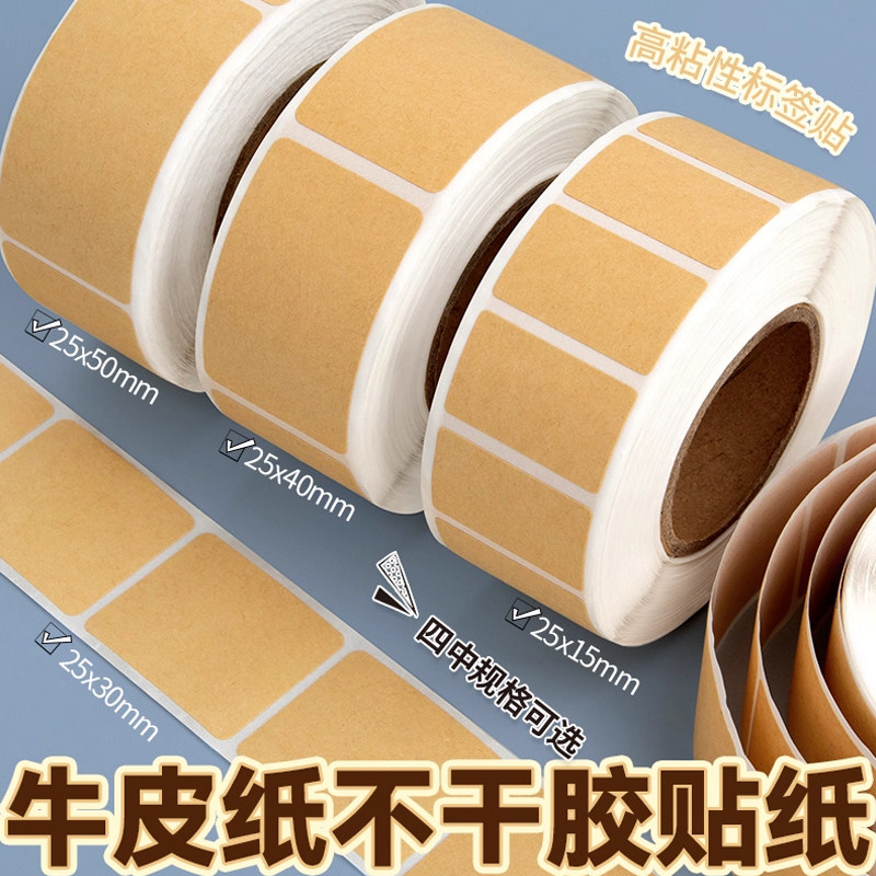 牛皮纸便签贴纸价格分类记号贴可手写备注价格标记食品分装瓶小中大号ins风包装记号无痕不留胶曲纸复古