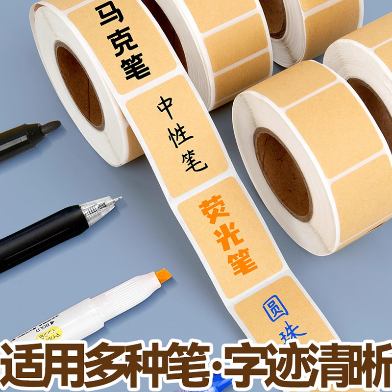 牛皮纸贴纸上门取件可撕防水标签贴自粘便签口取纸姓名记号贴