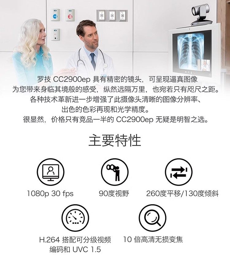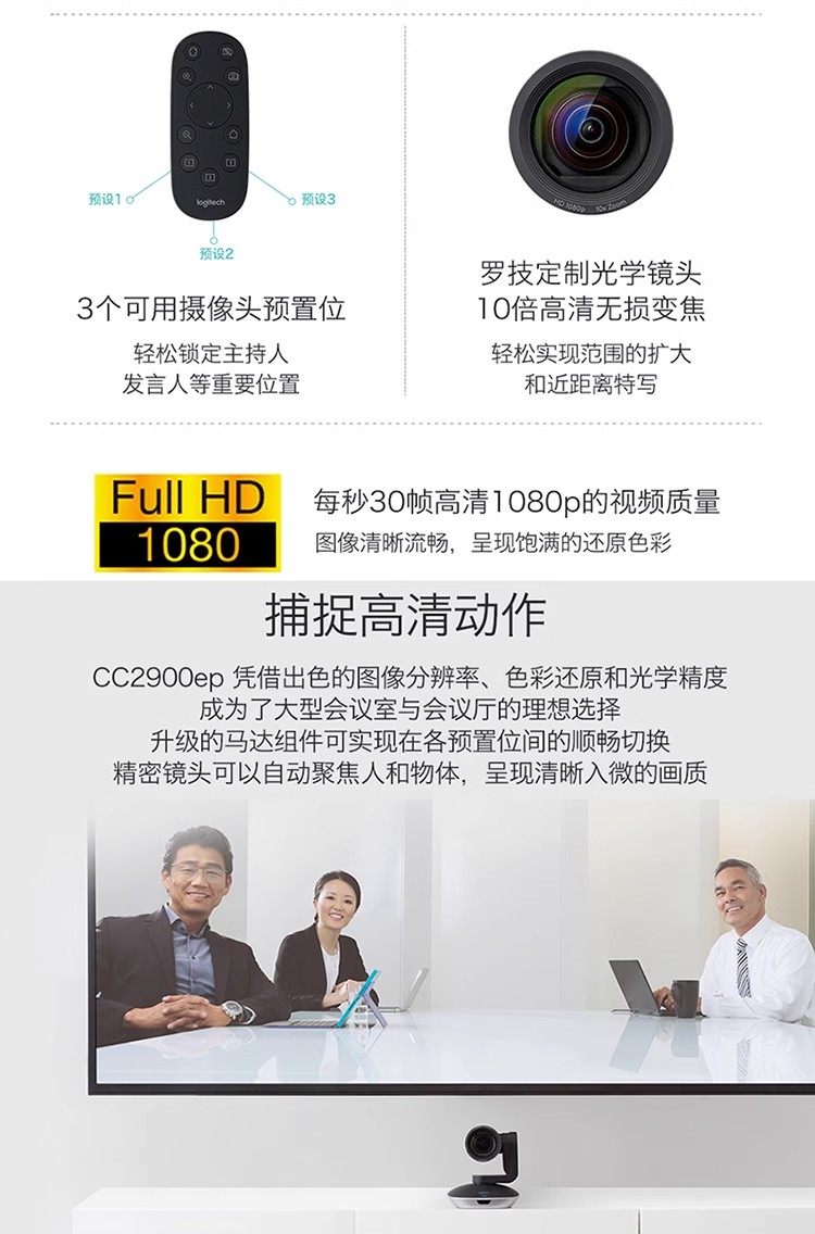 罗技PTZ PRO2 cc2900ep视频会议摄像头10倍 1080P CC2900E升级版
