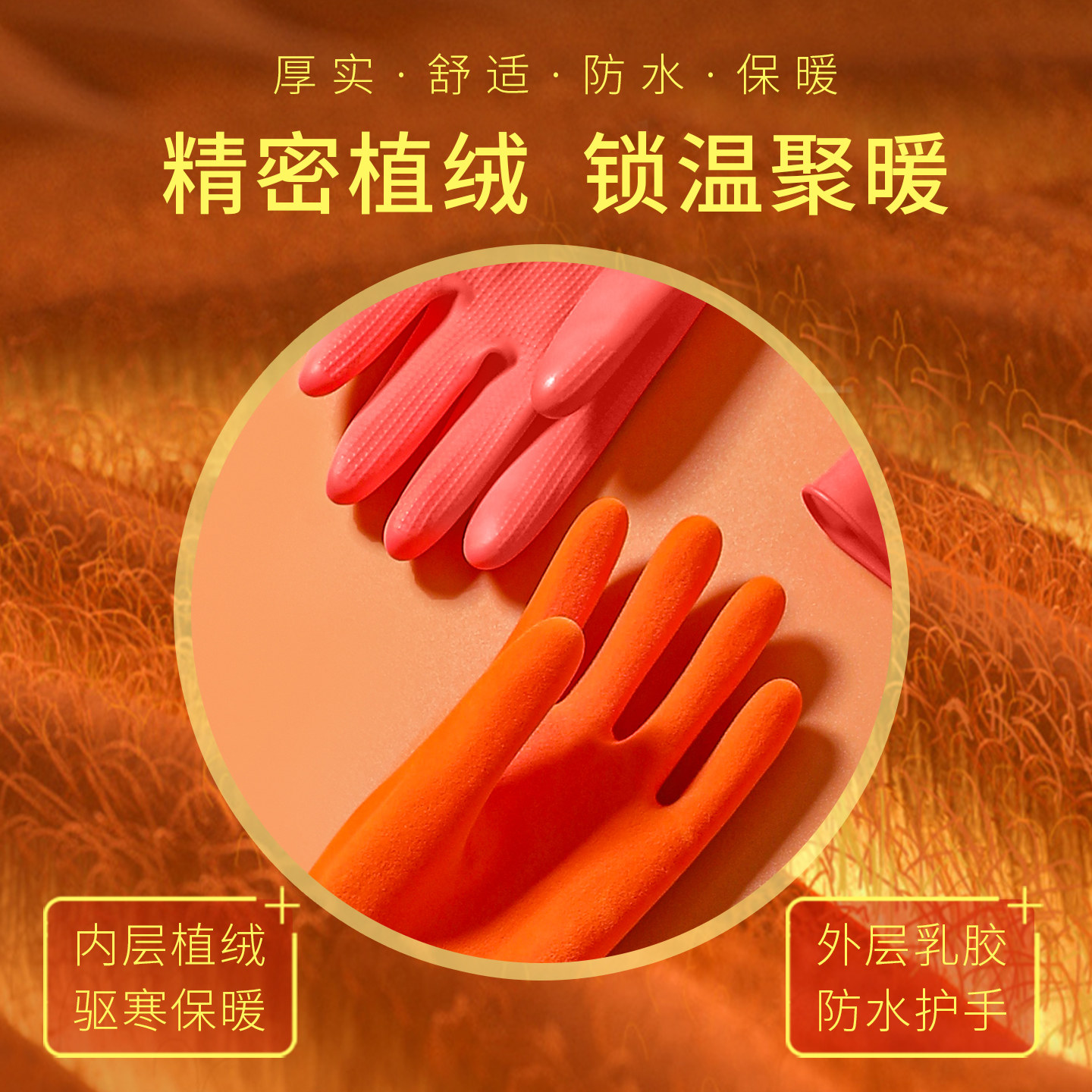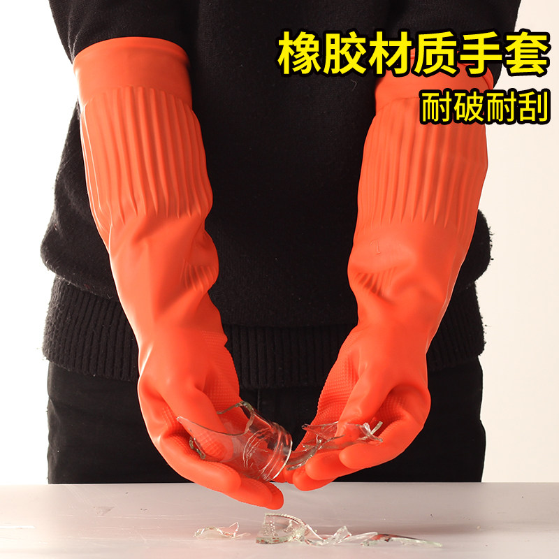 长胶洗碗加棉橡胶手套家务女加绒耐用冬天加厚加长乳胶特厚植绒