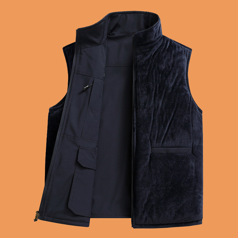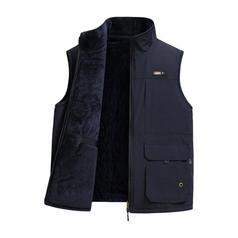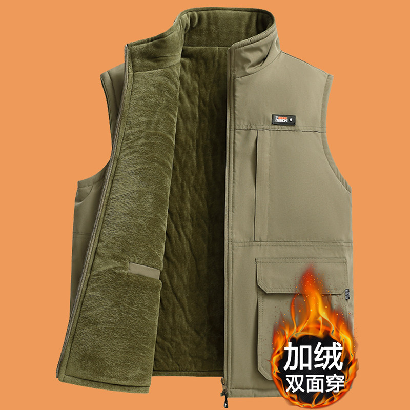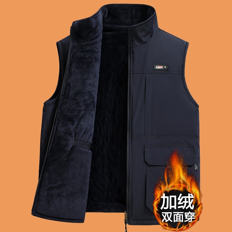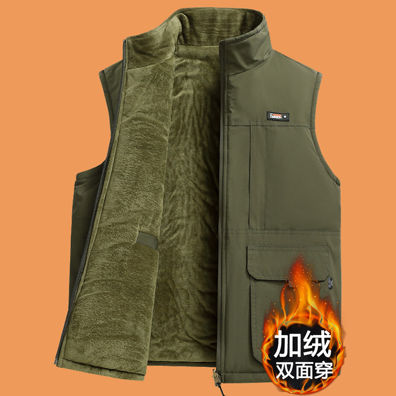 爸爸秋冬季马甲中老年人加绒加厚冬装男士工装保暖背心外套外穿
