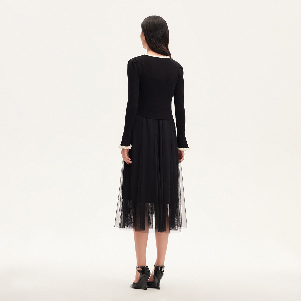 Vero Moda连衣裙25春季新款泡泡袖针织衫吊带网纱套装32517D010
