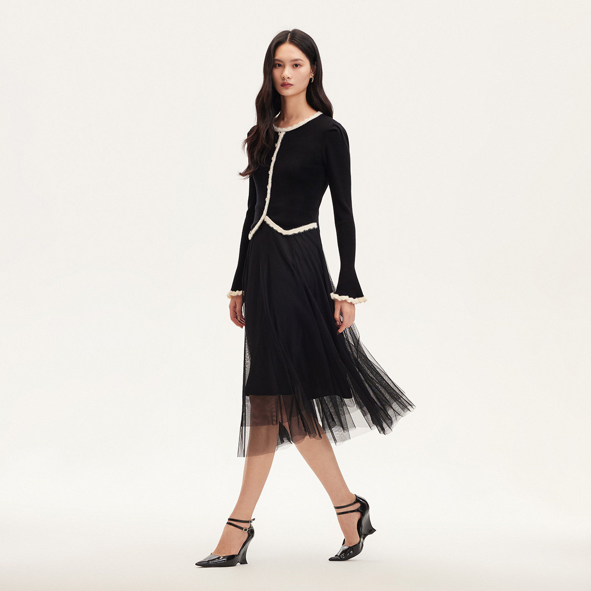 BANANA CICI2026年春季新款荷叶边V领针织衫/连衣裙