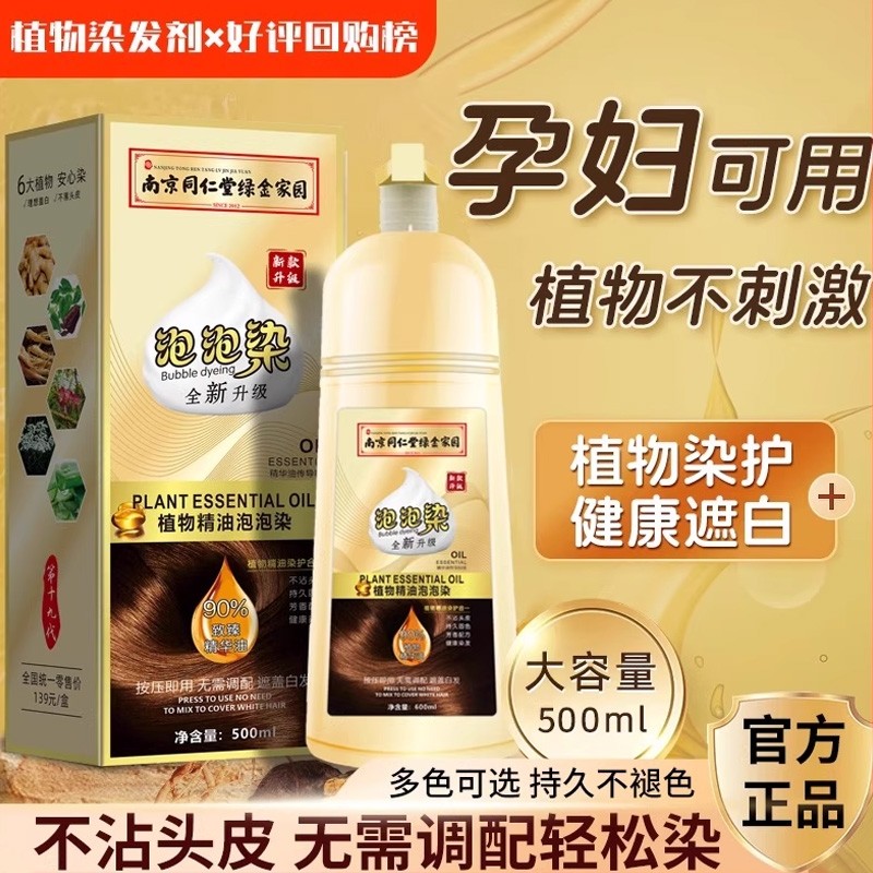 彩运来南京同仁堂染发剂泡泡染纯植物一洗黑无刺激黑茶色染发膏