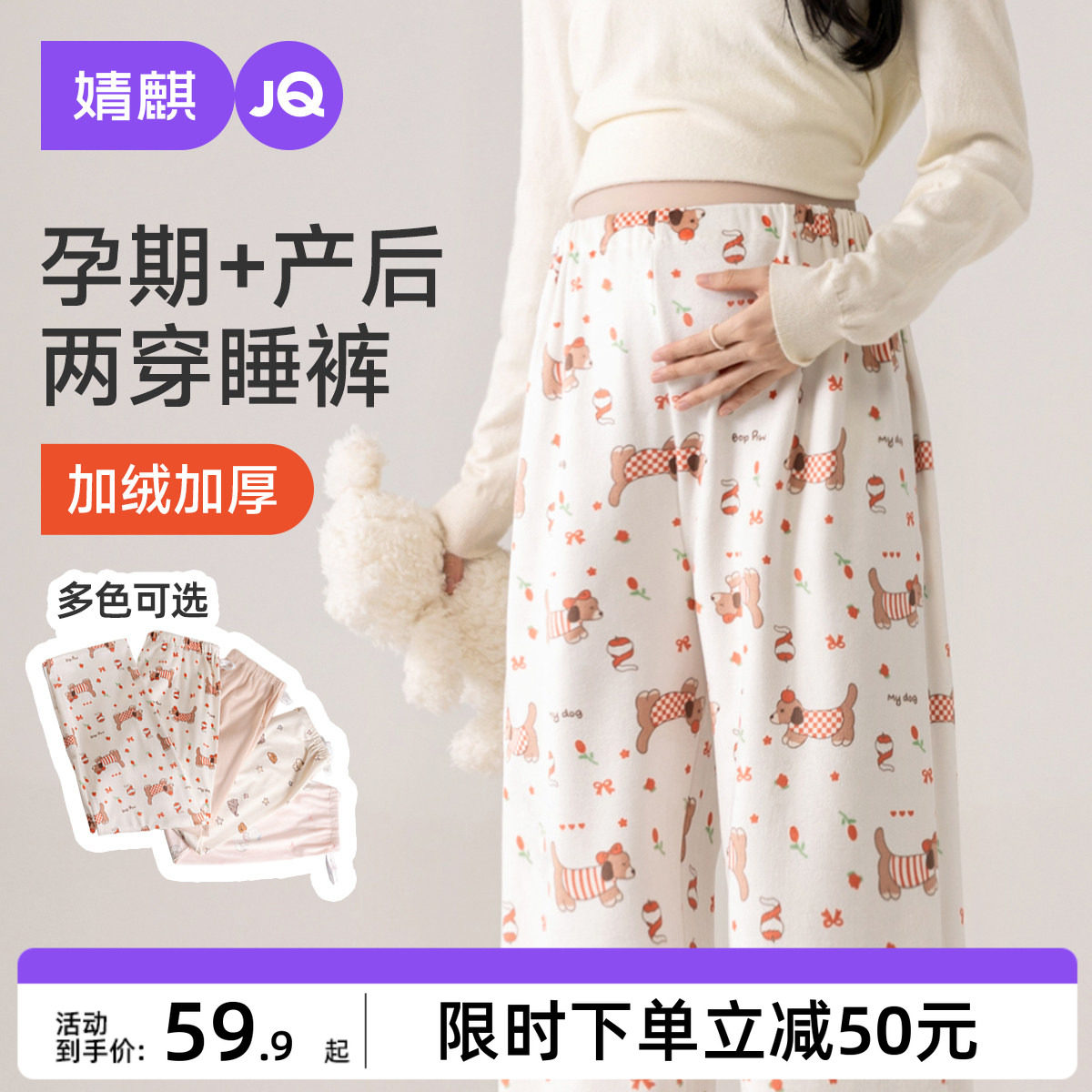 婧麒加绒加厚孕妇睡裤不勒肚子冬季孕期孕妇裤可外穿家居裤托腹裤