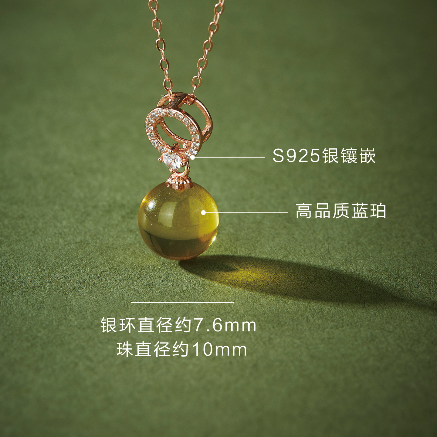 七彩云南净水蓝珀吊坠天然琥珀项链纯银挂件轻奢高级感送生日礼物