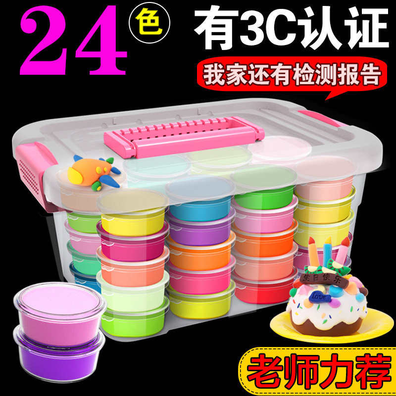 超轻粘土彩泥黏土橡皮泥122436色幼儿园学生开学太空泥diy玩具盒装24色学校12色蛋糕