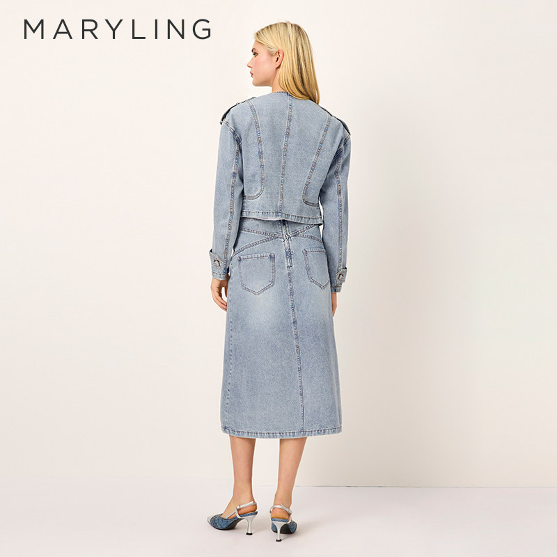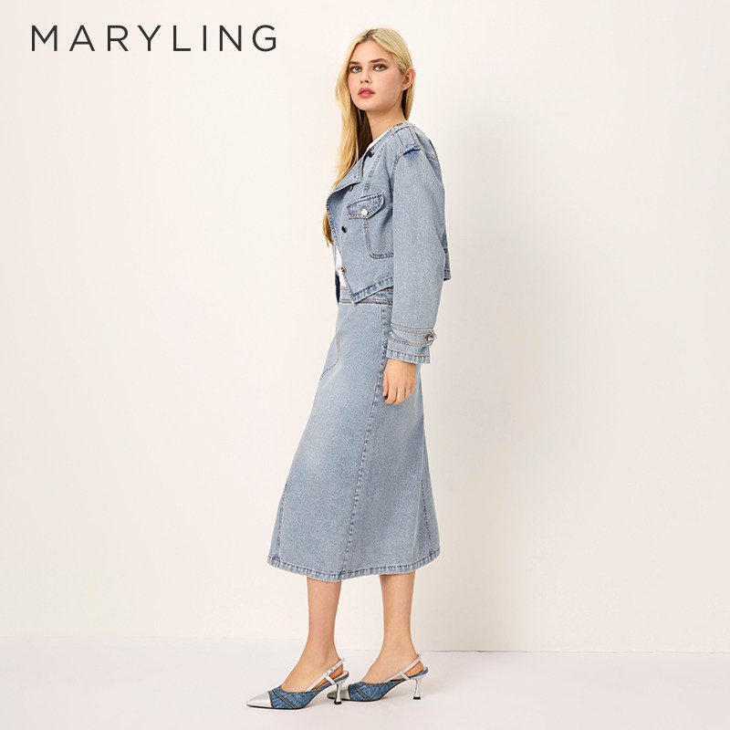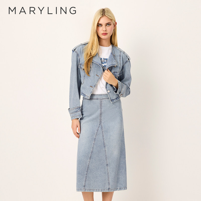 MARYLING玛俪琳2025春季新品短款收腰水洗牛仔外套A1FBW14390