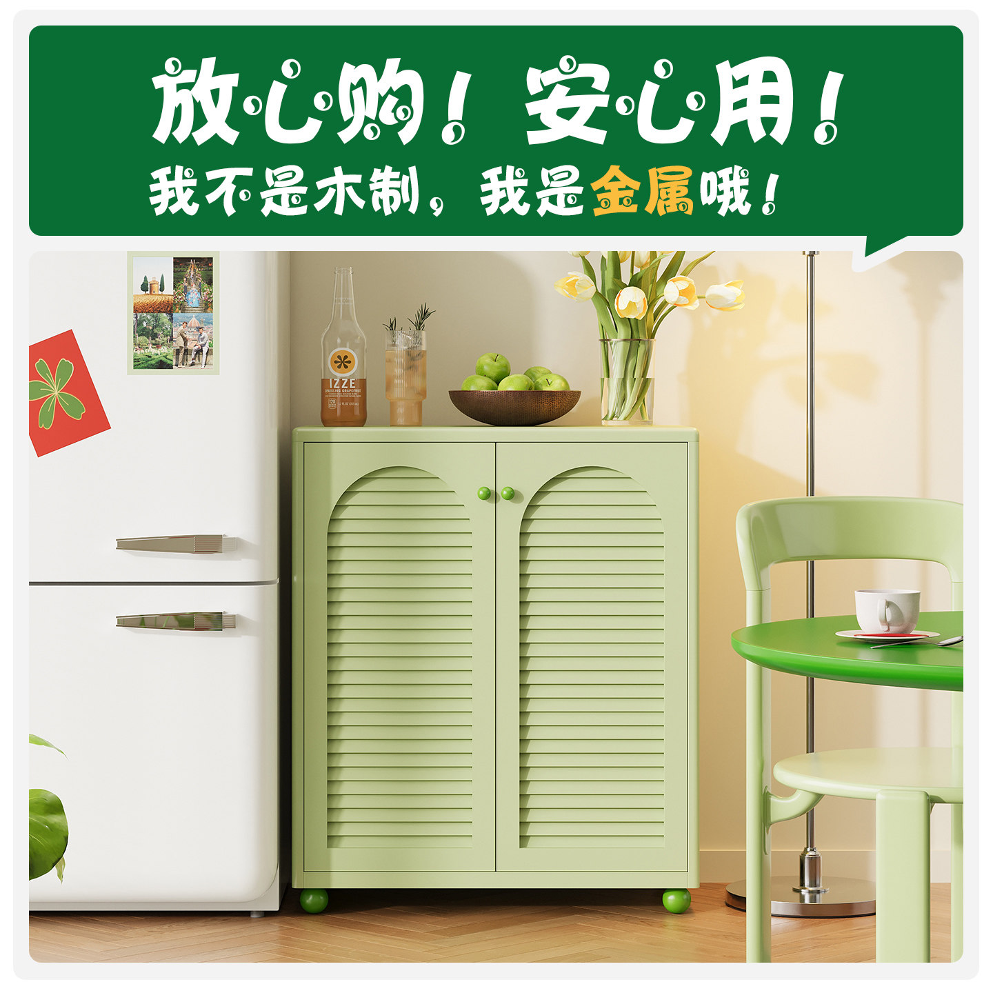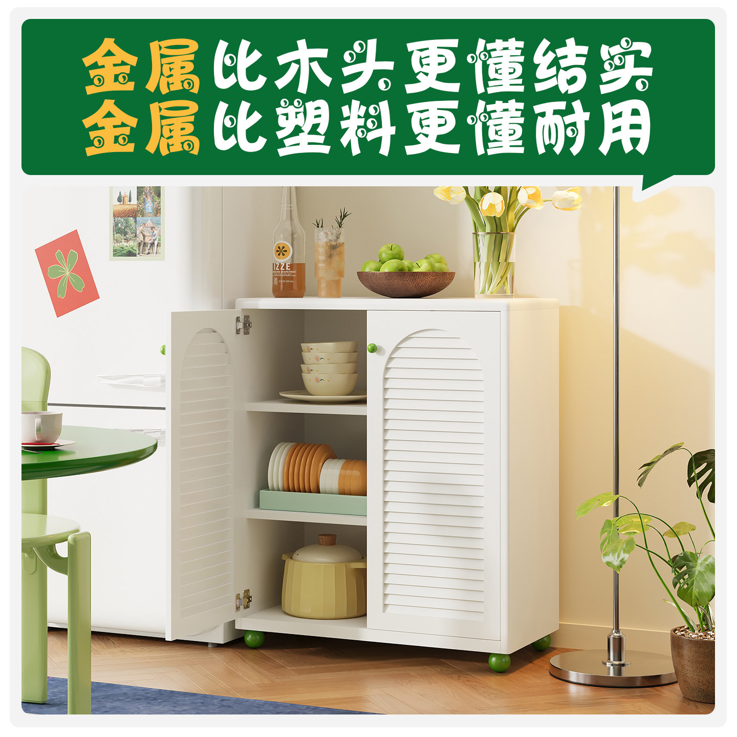 2026年新款金属餐边柜简约适合小户型窄边柜铁艺客厅收纳架储物柜
