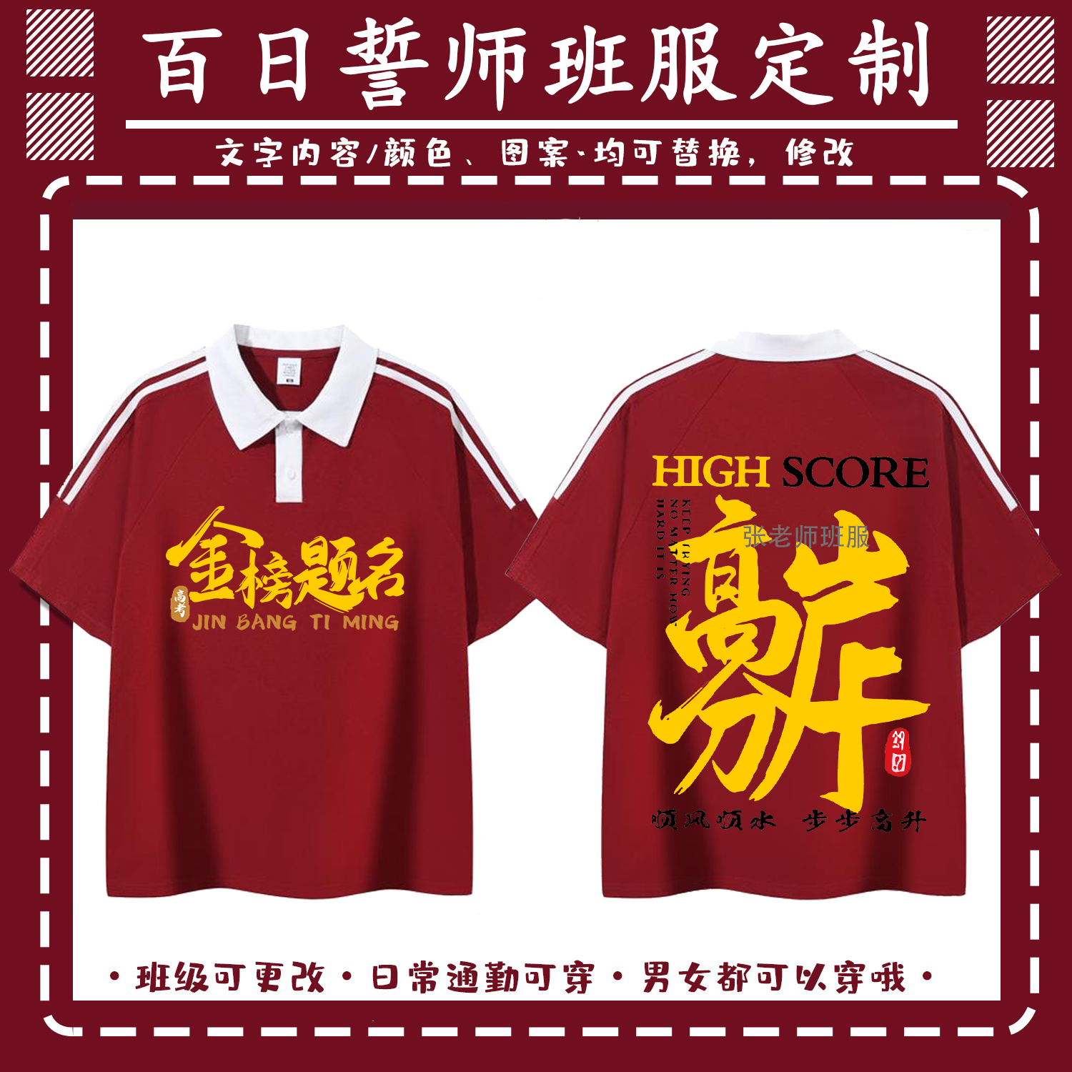 德国品质毕业班服定制中考红色高考T恤金榜题名运动会学生加油短