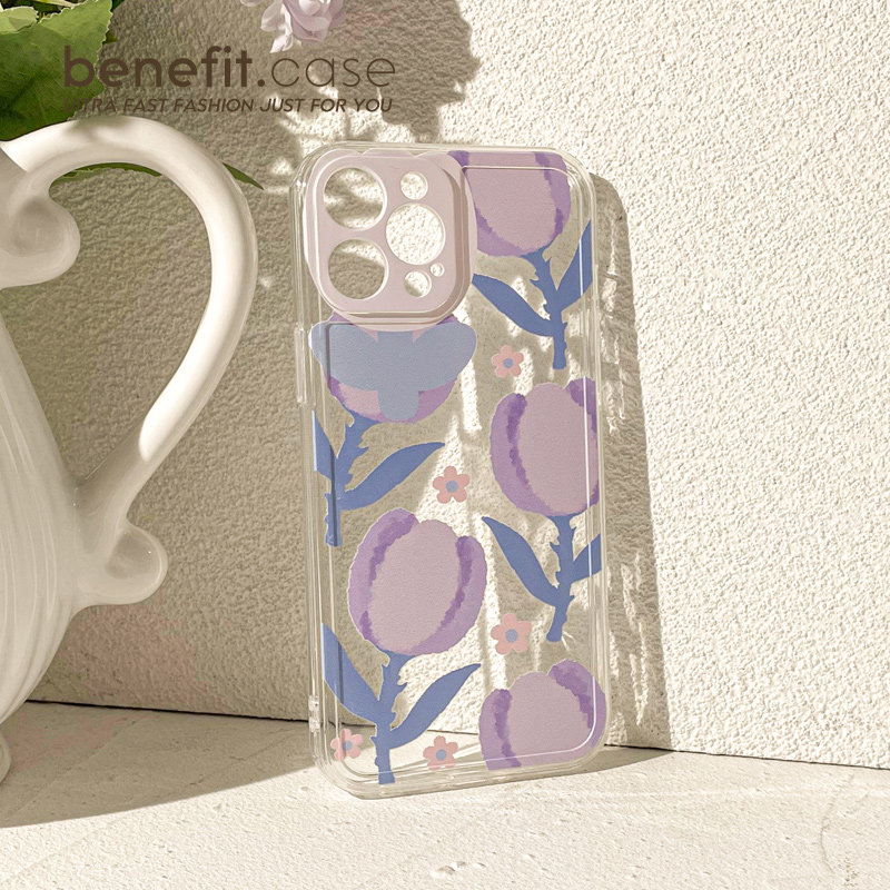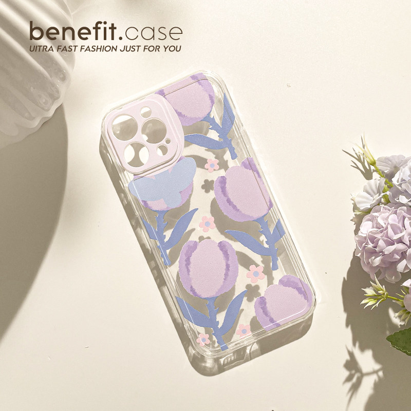 Benefit日韩ins油画紫郁金香17pro16适用15苹果13promax手机壳iphone12mini防摔14promax新11xs透明xr硅胶8p