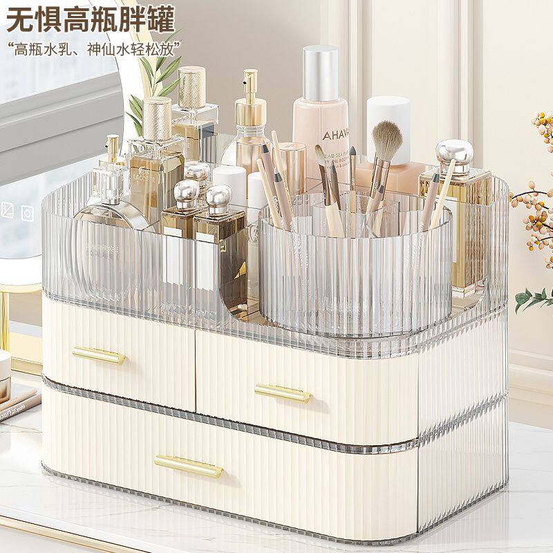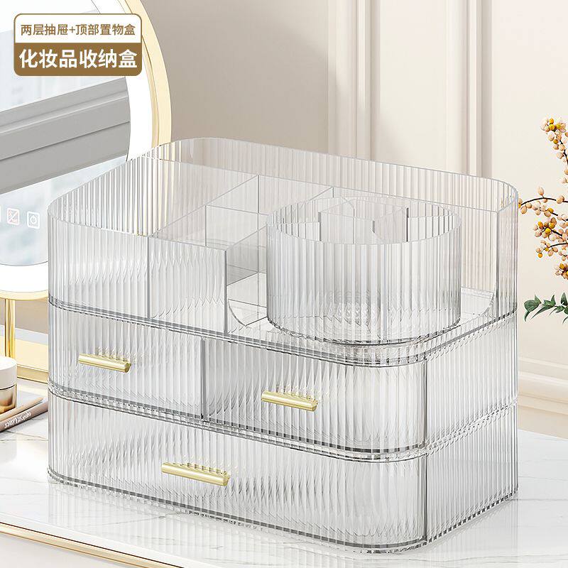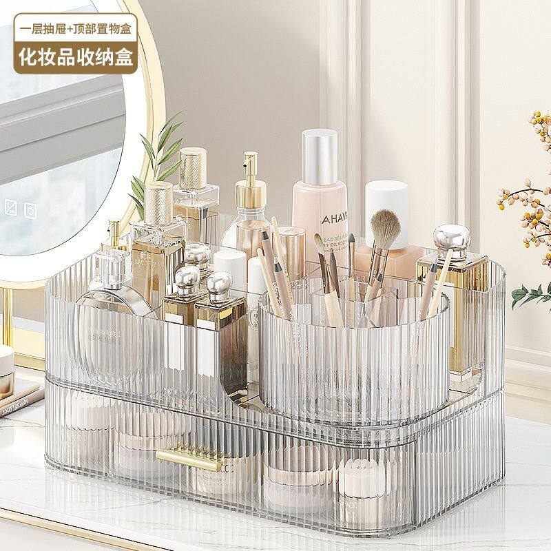 抽屉式化妆品收纳盒收纳桌面置物架防尘宿舍护肤品梳妆台杂物