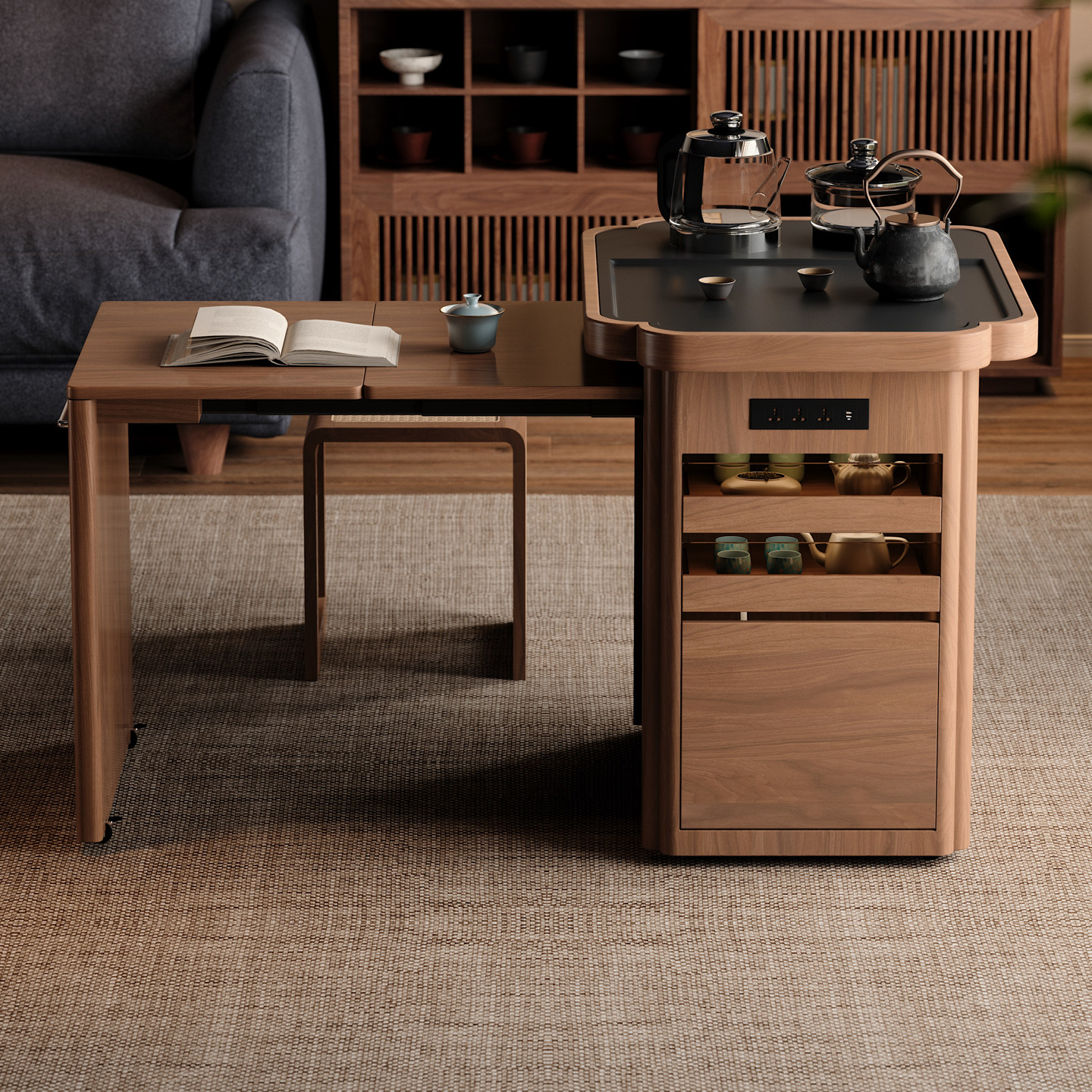 木小咖 春野移动边几现代简约家用茶台实木阳台茶桌茶水柜