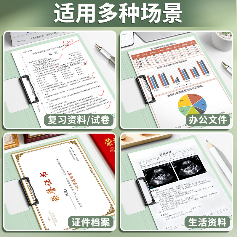 文件夹板夹a4纸资料夹活页收纳双夹多功能纸夹板夹写字板书文具本夹子竖办公用品小学生专用试卷整理神器档案