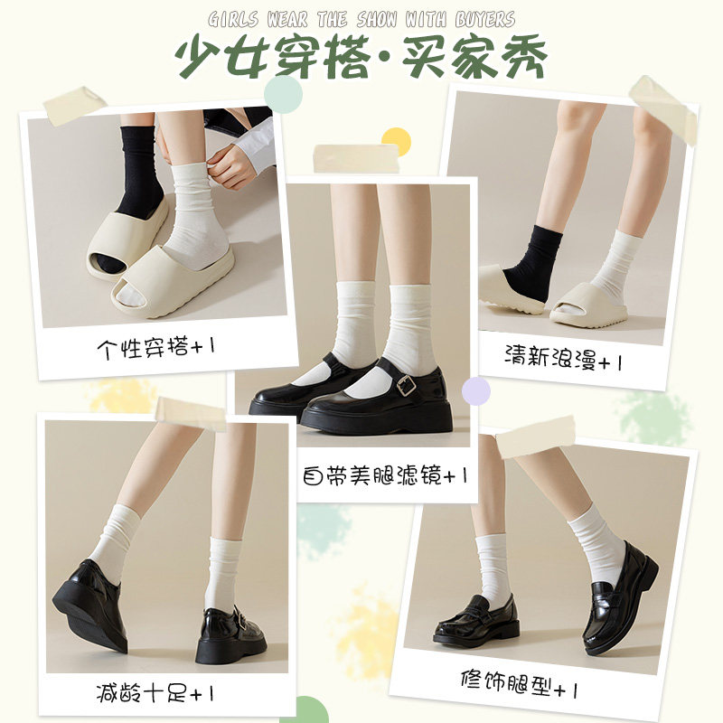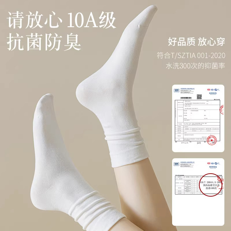 袜子女中筒袜白色堆堆袜春秋款无骨袜纯棉抗菌防臭月子袜长袜秋季
