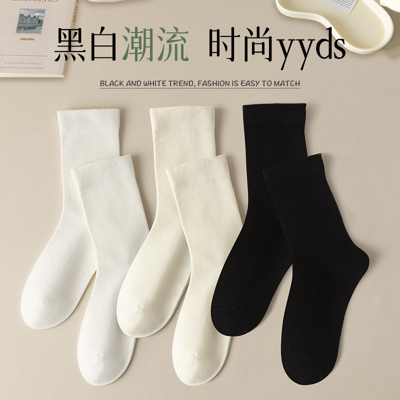 袜子女款纯棉中筒袜秋冬季抗菌防臭吸汗运动棉袜春秋款无骨短筒袜