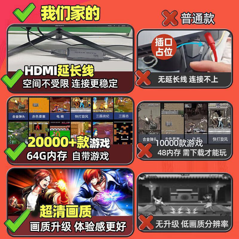 电视游戏机双人摇杆街机FC怀旧款老式单机拳皇家用支持玩超级玛丽