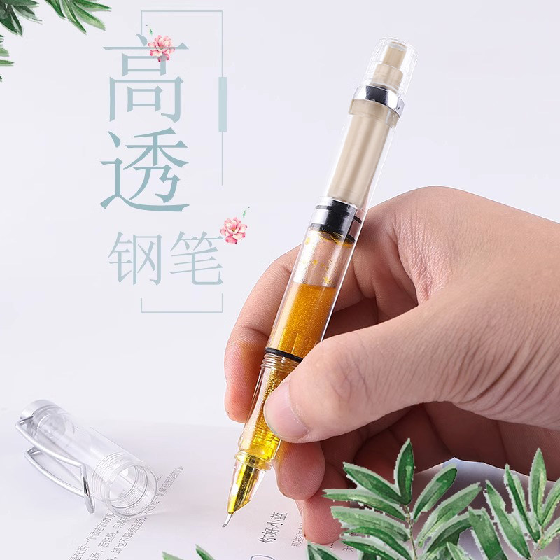 正品永生3009透明示范活塞大容量美工笔钢笔弯头弯尖学生书法练习签字笔金粉彩色墨水