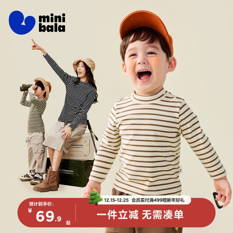 迷你巴拉巴拉男女童亲子长袖T恤2025秋冬季儿童半高领百搭打底衫