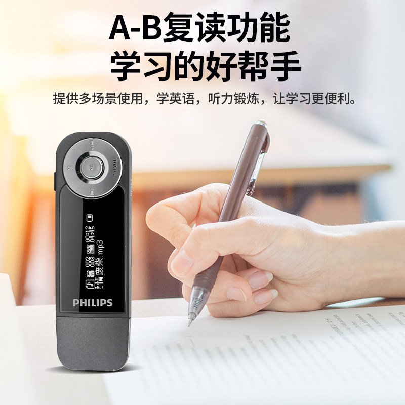 飞利浦MP3播放器音乐运动背夹显示歌词学生学英语mp3随身听SA1208