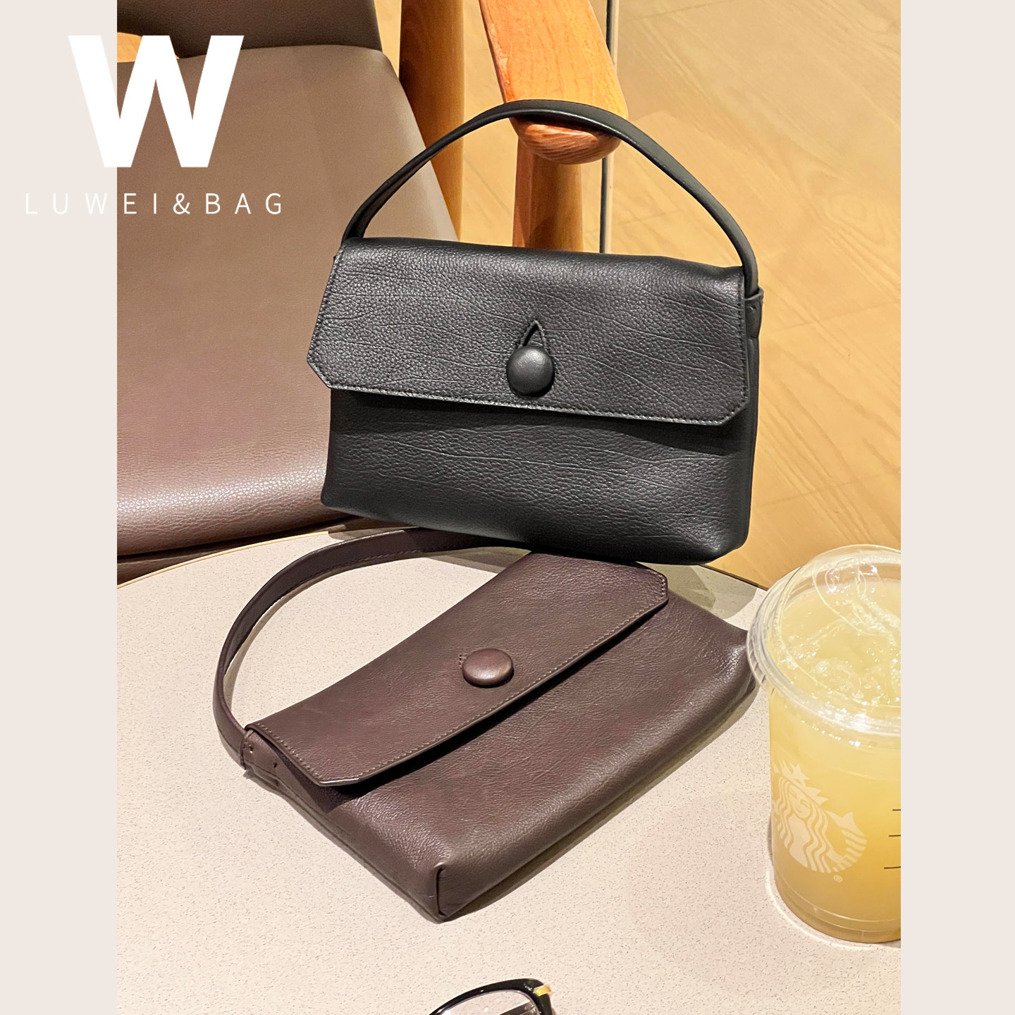 makisepop原厂皮新款TR sally纽扣手提包进口小胎牛皮row风手拿包