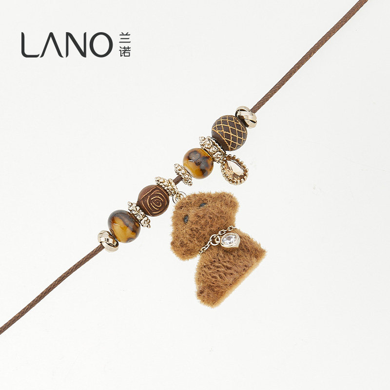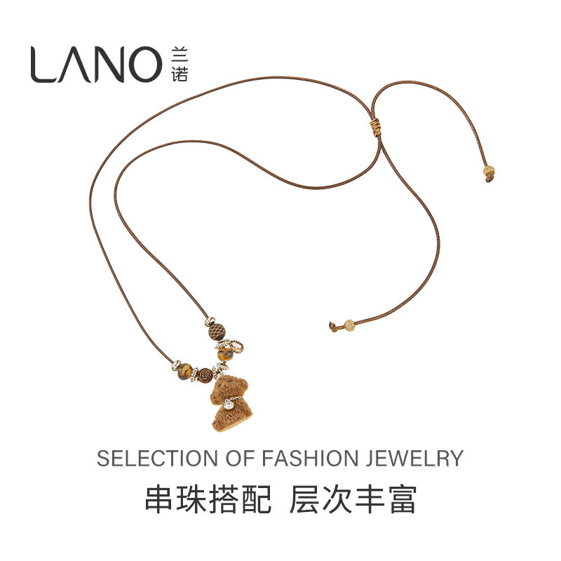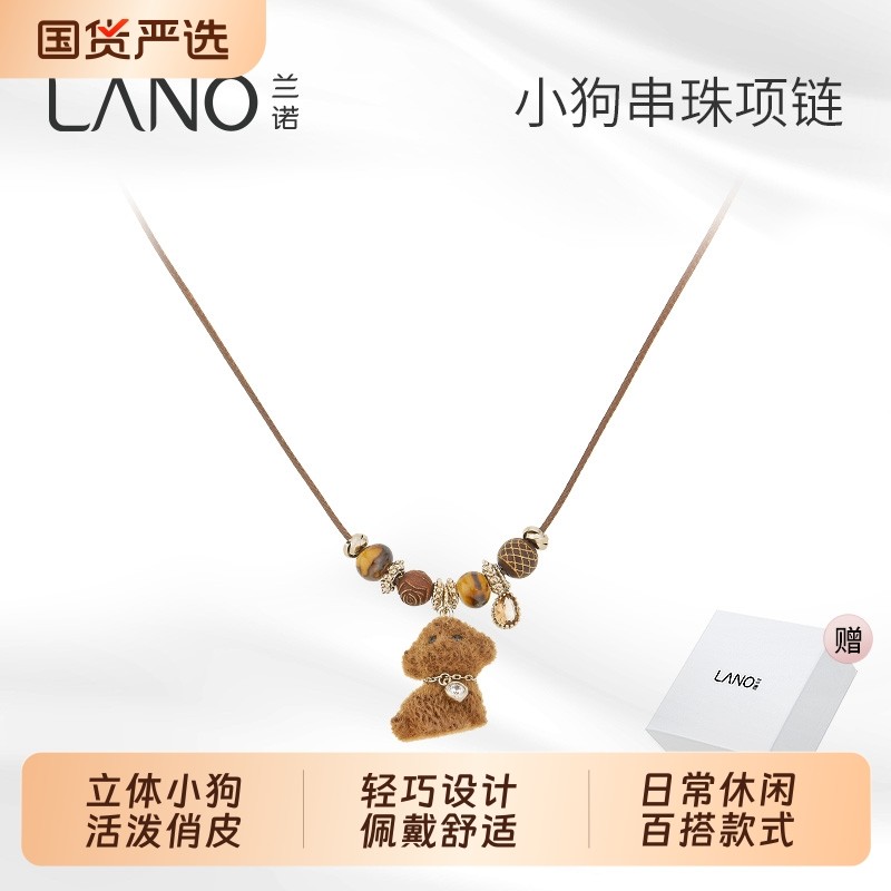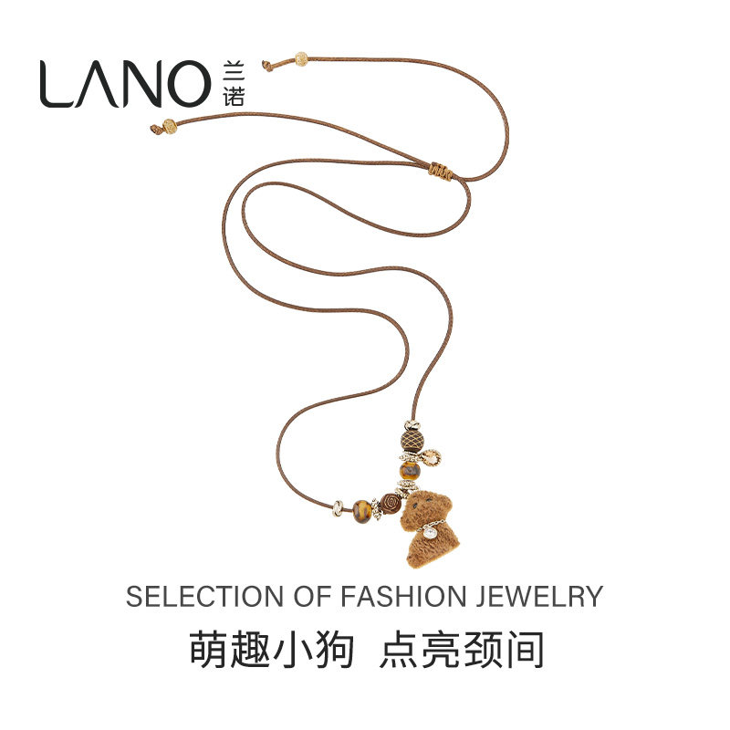 兰诺小狗吊坠项链女波西米亚风皮绳毛衣链2025新款小众设计感配饰