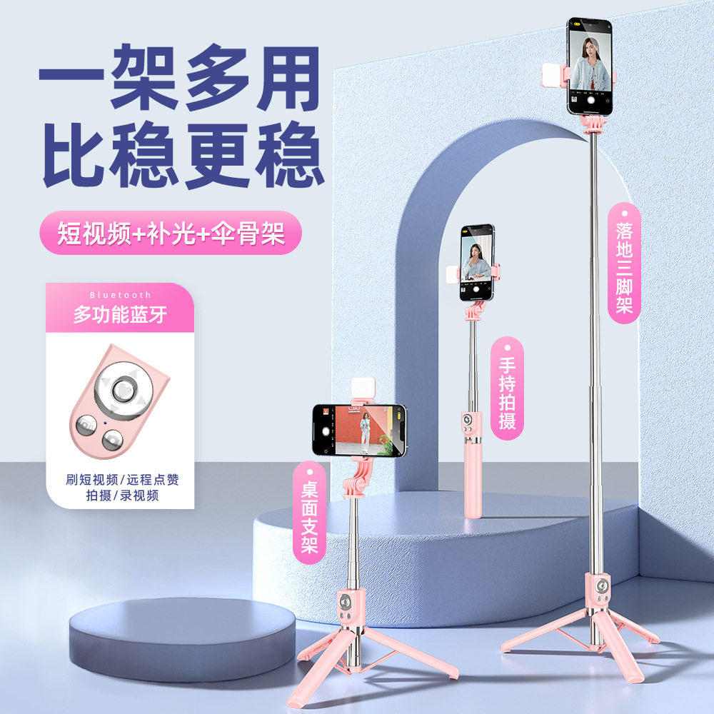 手机自拍杆批发蓝牙遥控补光灯桌面落地加固三脚架一体式直播